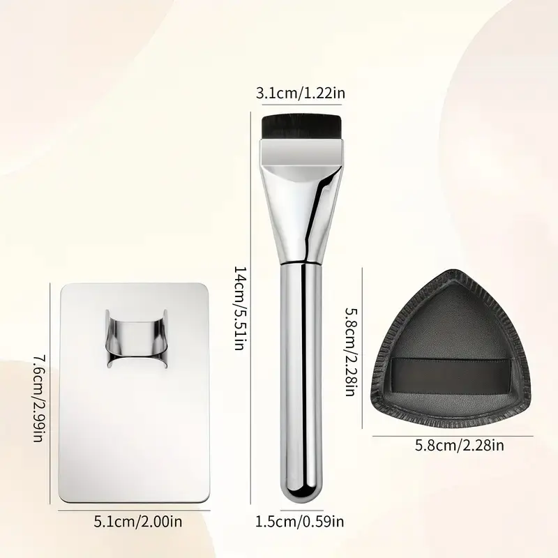 1/3 Piece Makeup Tool Set, Includes Flat Foundation Brush, Multi-Functional Wet & Dry Concealer Puff, Color Mixing Palette
