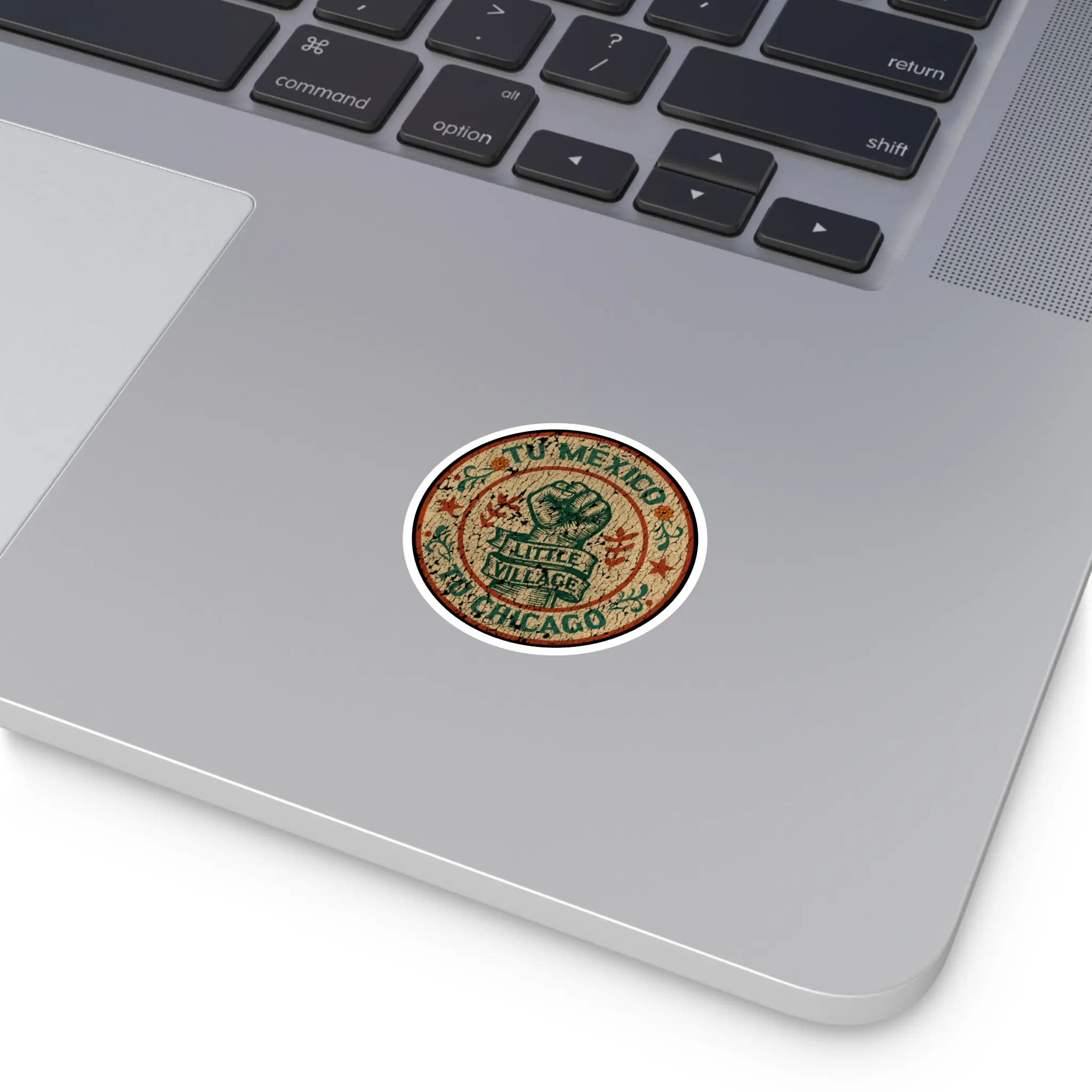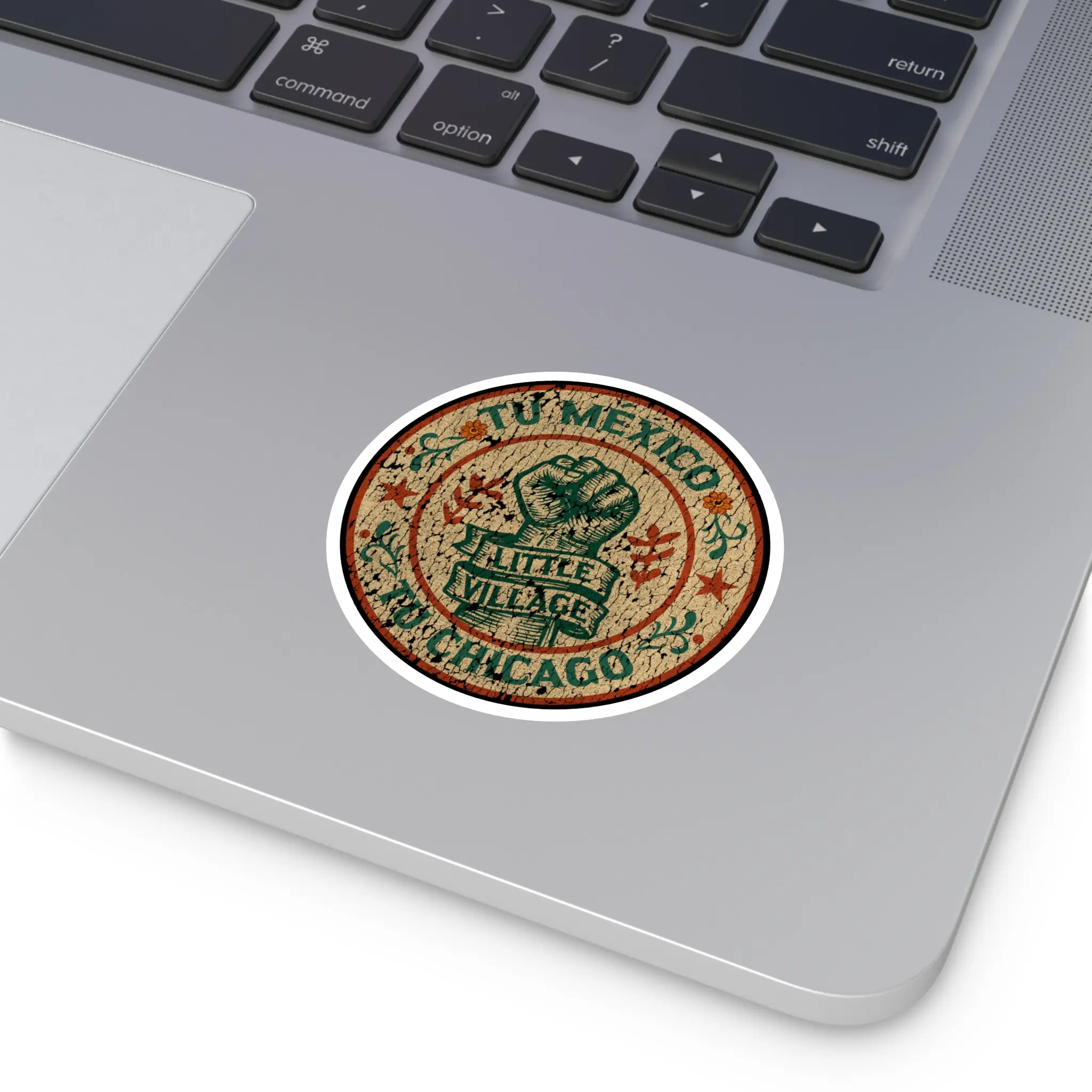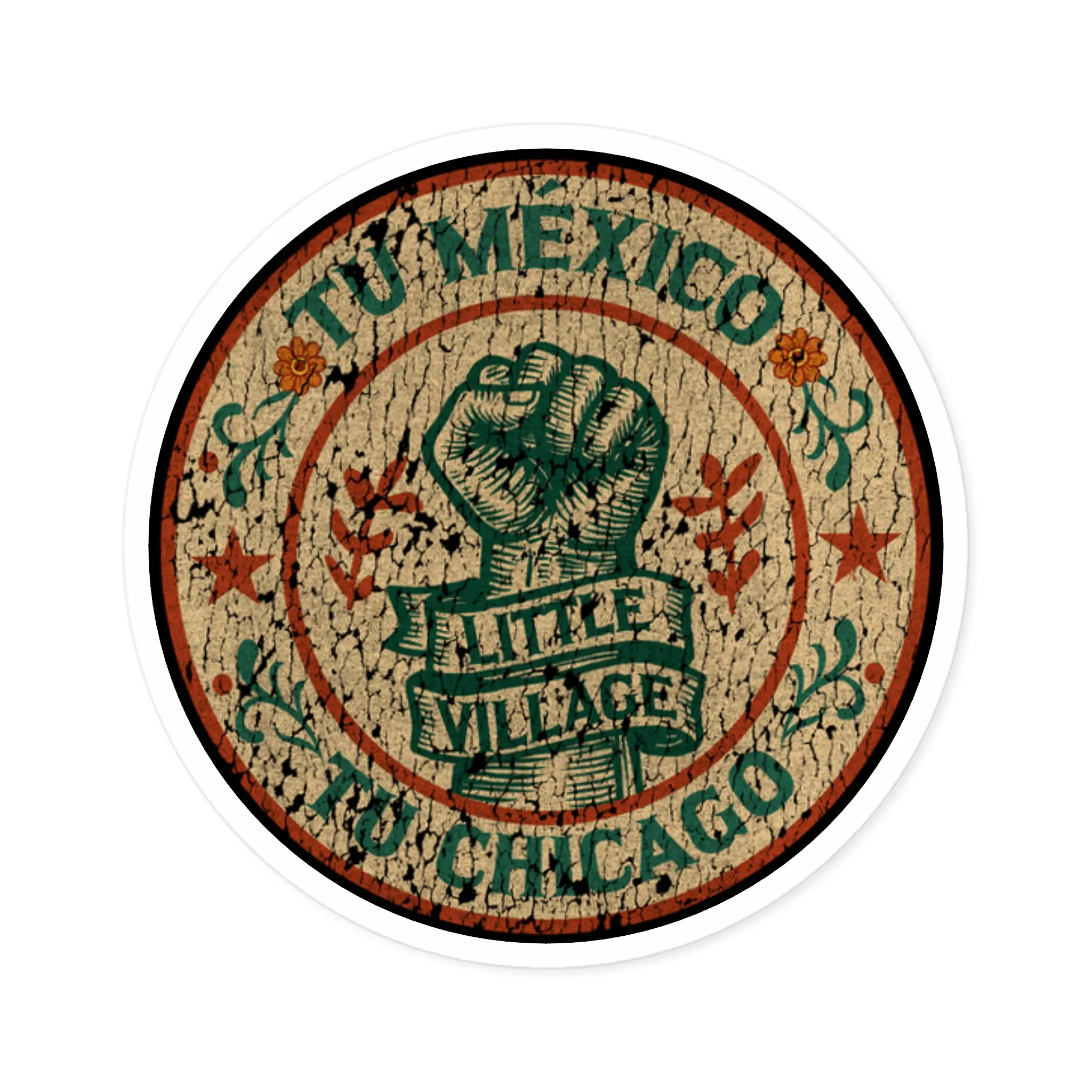 Created to honor the resilience of Little Village, this sticker stands in solidarity with the families, workers, and neighbors who give La Villita its voice. A wearable message of unity and support—made from durable, long-lasting vinyl.