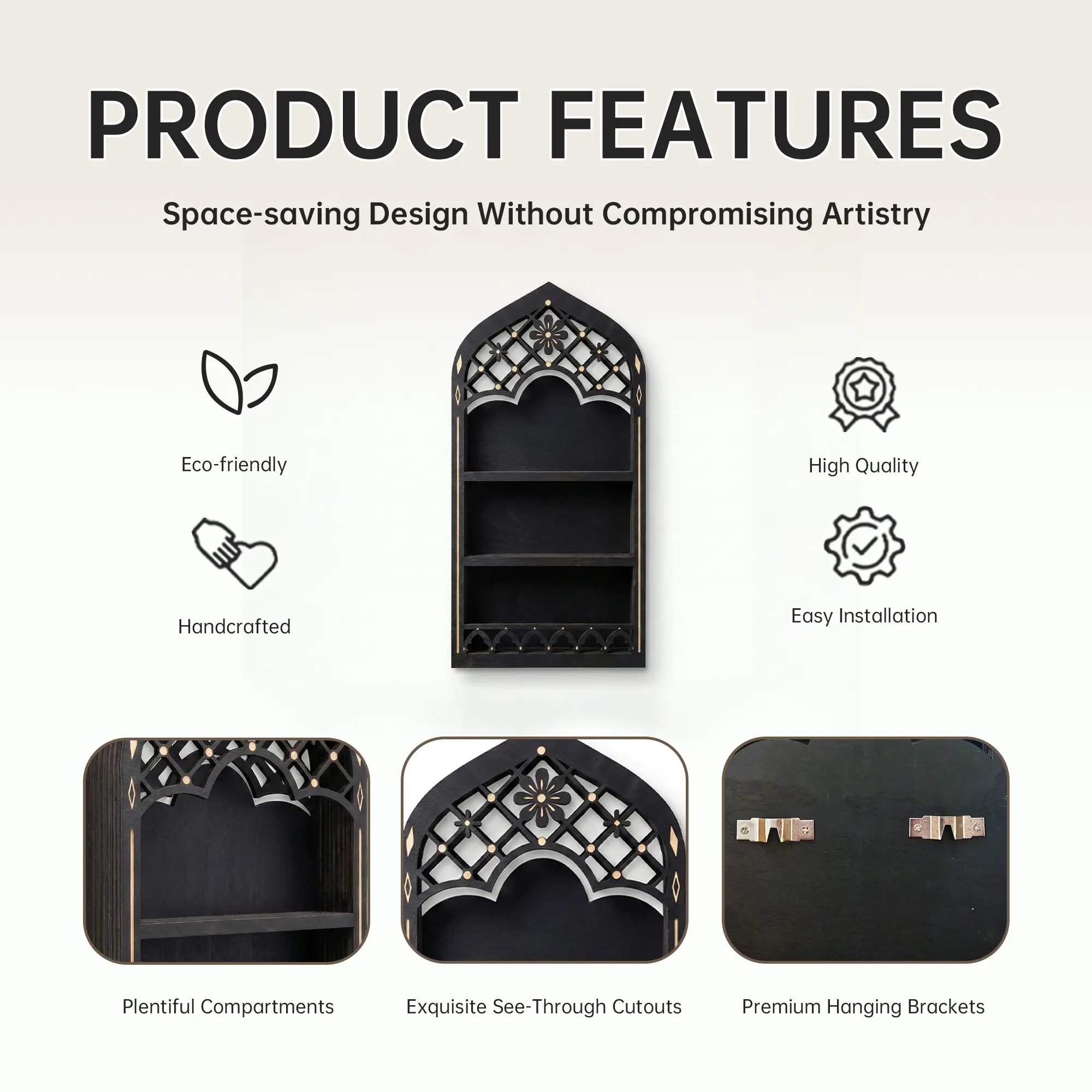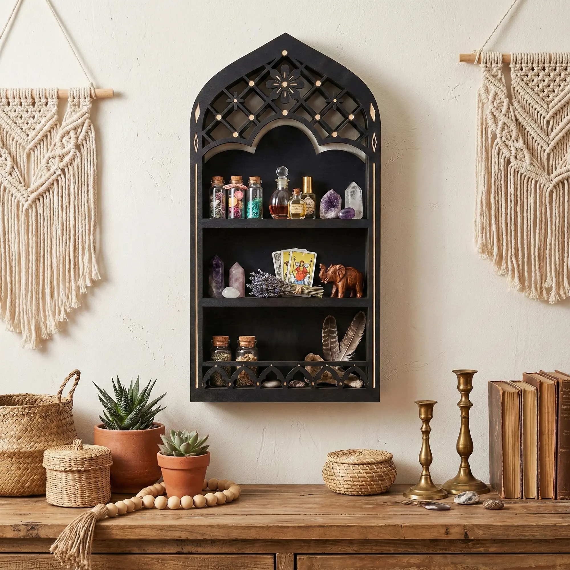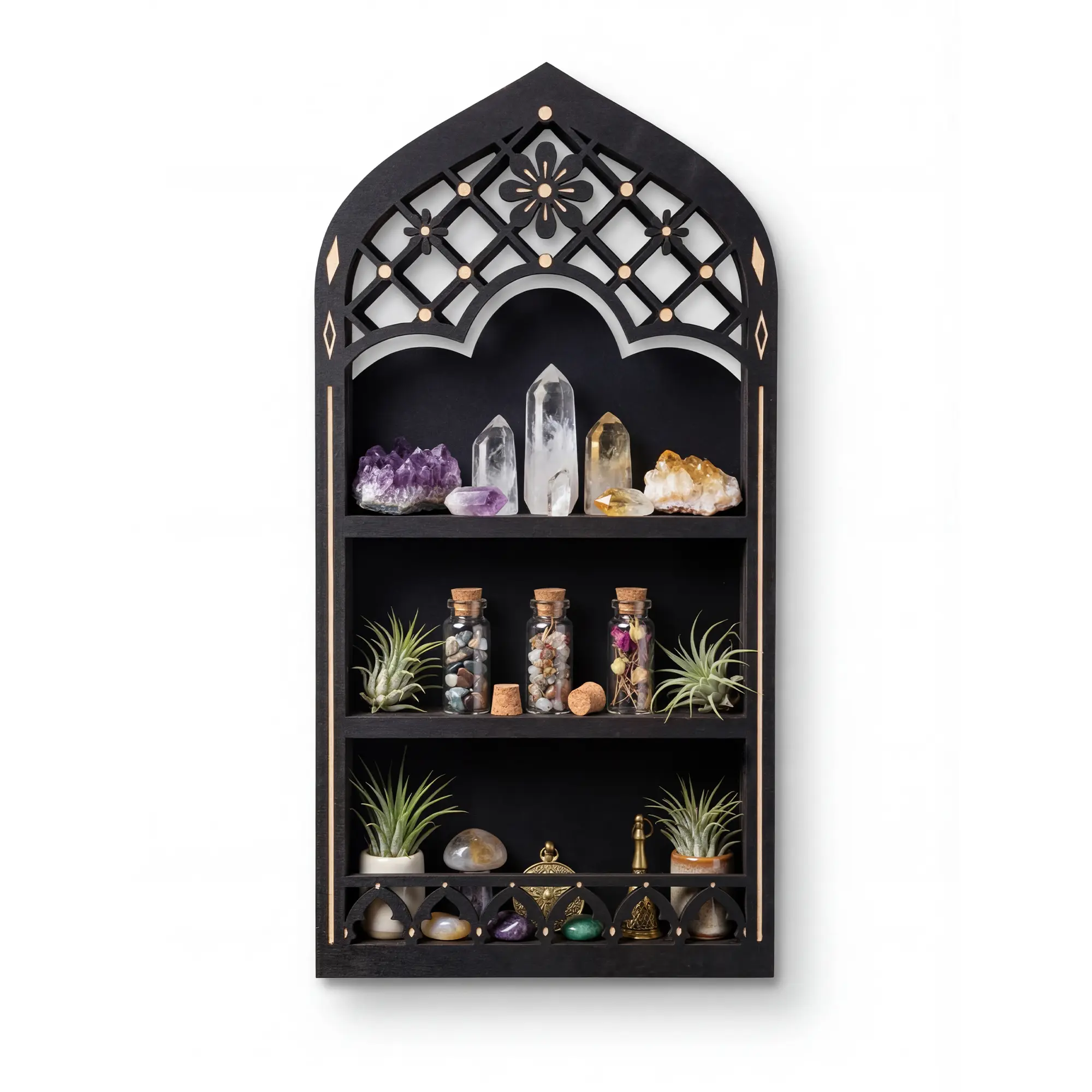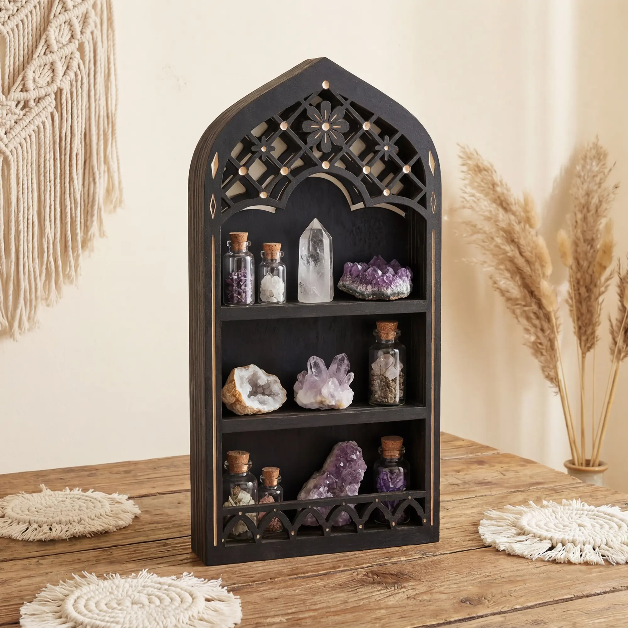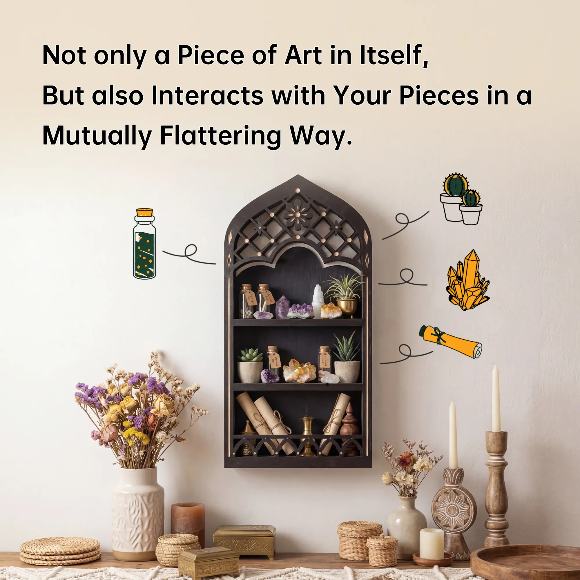 ·PRACTICAL & AESTHETIC: This original design serves as both a functional display shelf and an artistic piece of wall decor. Featuring a three-tier structure, it provides a dedicated space to organize your crystal holder, rocks, or statues. It functions effectively as a trinket shelf for your cherished collectibles, enhancing any room's atmosphere with its unique arrangement.