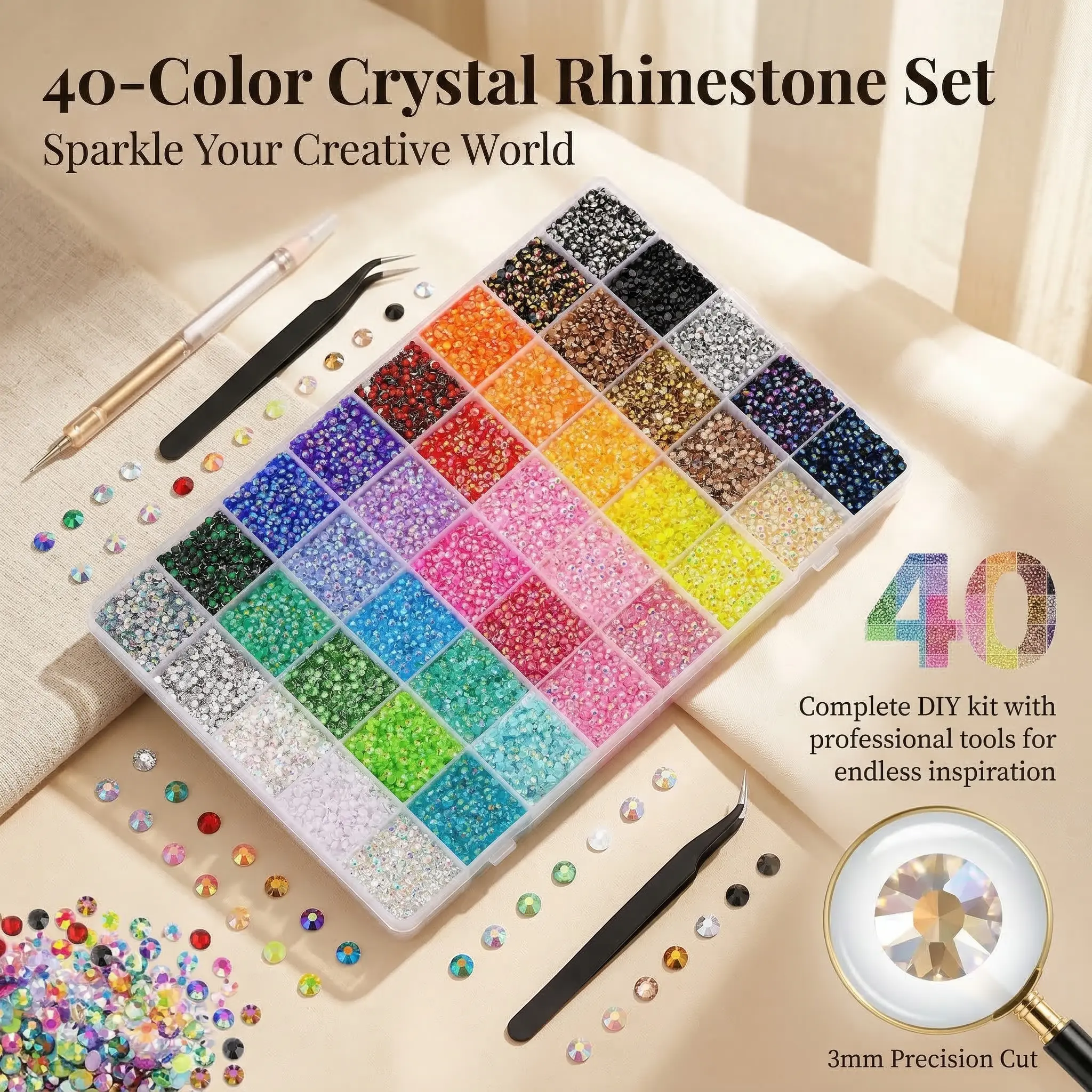 This kit includes 40 vibrant resin jelly rhinestones in 3mm mixed resin synthetic beads. Perfect for bedazzling various items like nail art, tumblers, shoes, clothes, and jewels. Each bead offers a unique color, enhancing your DIY projects. The kit also comes with a complete tool kit, making it easy to apply and decorate. Ideal for gifts and personal use.