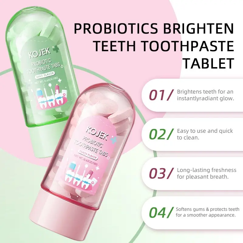Probiotic Solid Toothpaste Tablets OEM Removes Tooth Stains, Freshens Breath, Eliminates Bad Breath, Portable Mouthwash Tablets