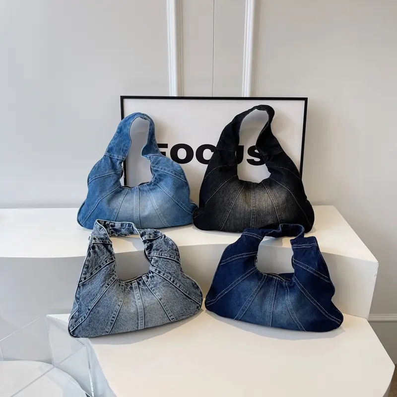 Fashionable Denim Shoulder Bag for Women – New Trendy Design for Cool Girls – Small Casual & Practical Everyday Armhole Bag