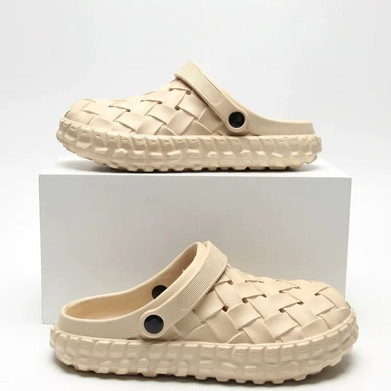 Featured with a unique woven hollow-out upper, it creates full-around air circulation channels for your feet.It can quickly dissipate heat and wick away sweat in high temperature, keeping your feet dry and cool all day long, saying goodbye to stuffy sweat and peculiar smell.The hollow structure can also drain water instantly, no water accumulation inside the shoes, perfect for bathroom, shower and beach use.