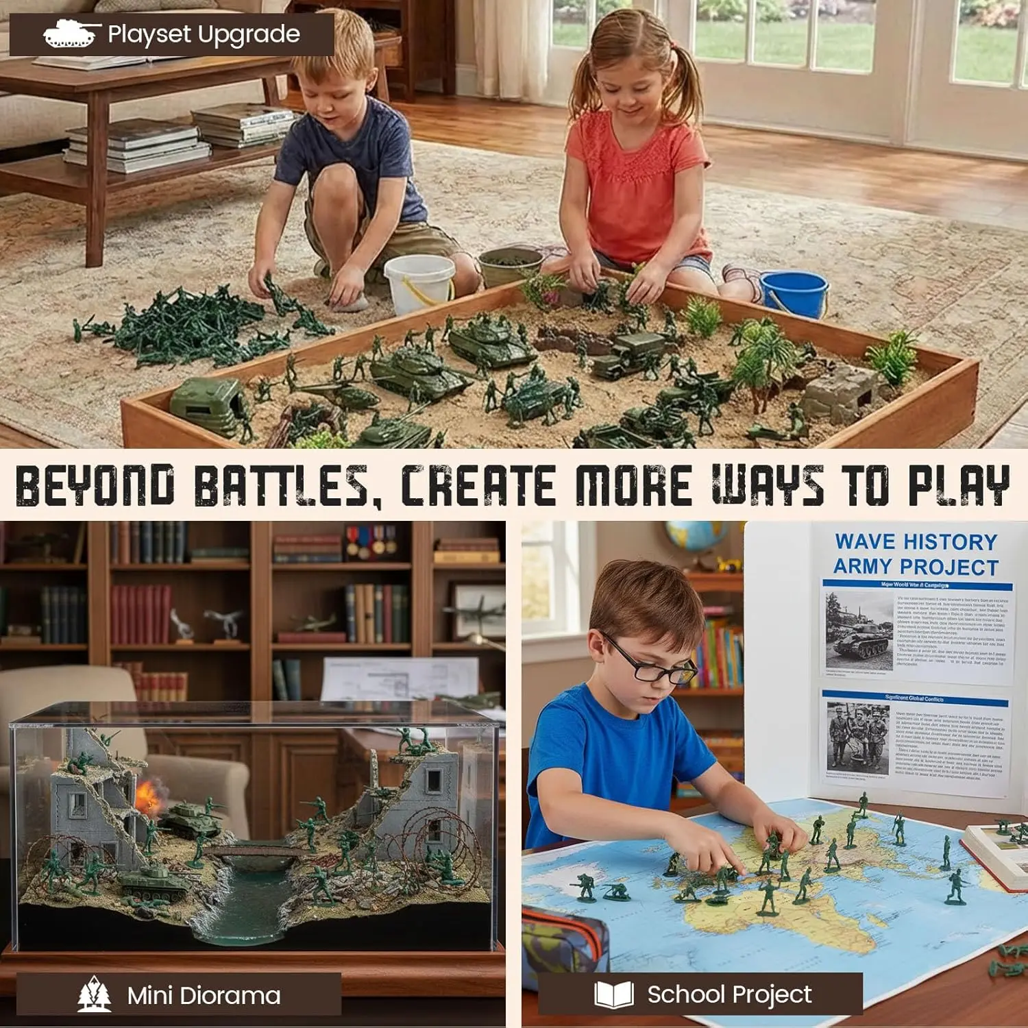 200PCS Army Men Toy Soldiers, Classic Military Toys for Kids 3+, School Projects, Dioramas & History Lessons, Stocking Stuffers, Holiday & Birthday Gifts for Boys