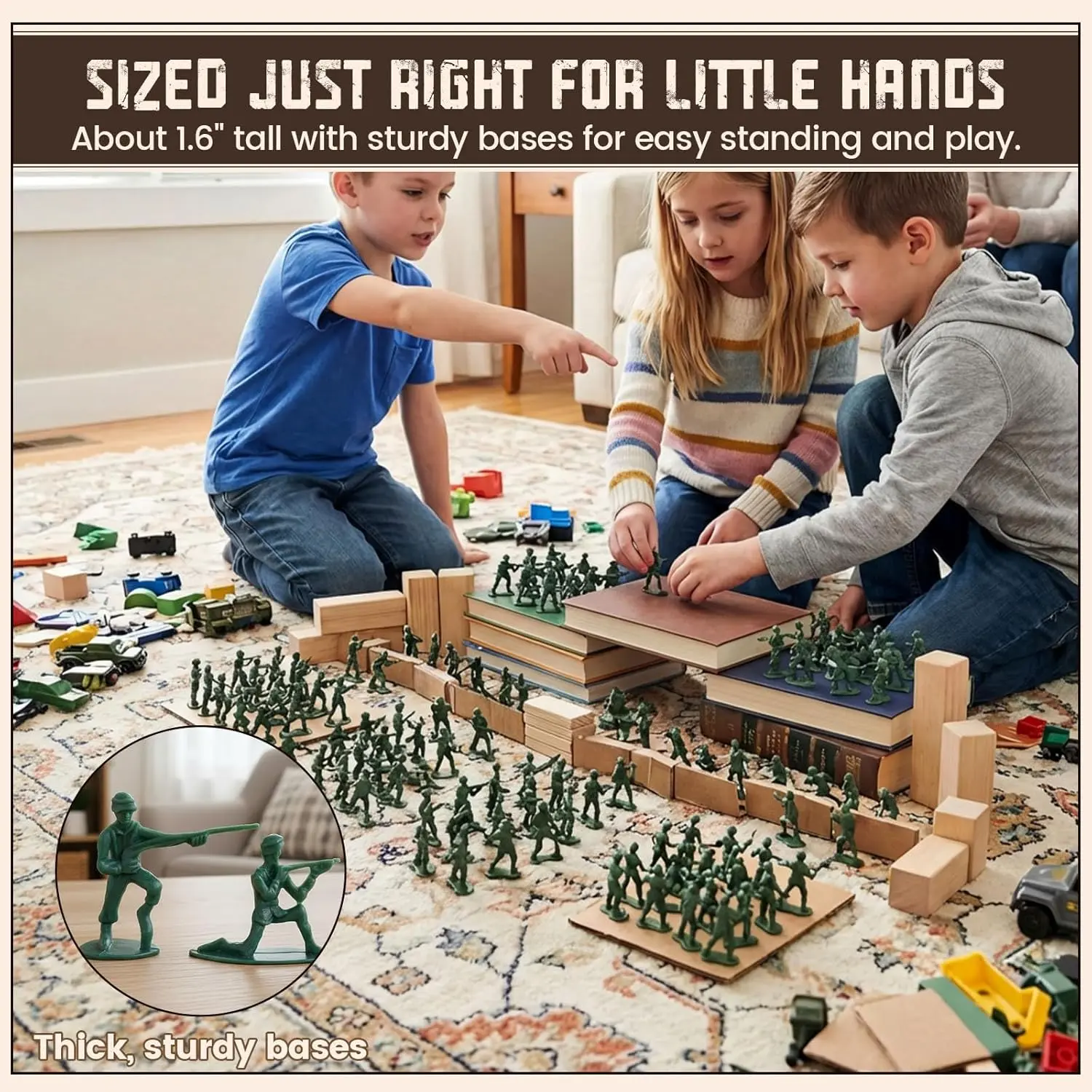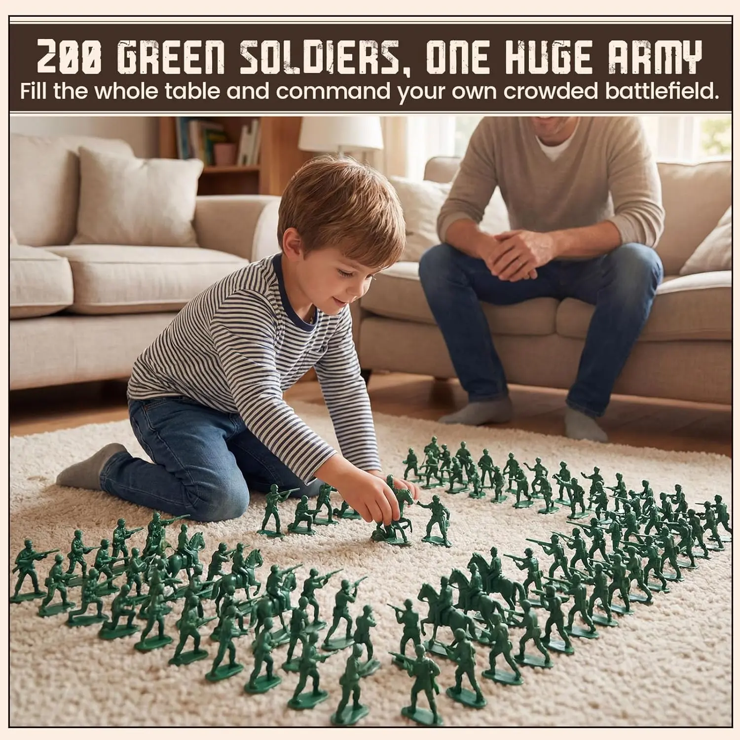 200 Pieces - Super Value Pack 200 Classic Army Men! Get green soldiers for epic battles. This bulk pack offers unbeatable value, perfect for large play scenes, sharing with friends, or filling multiple Christmas stockings and party favor bags. Perfect Christmas Stocking Stuffers The Holiday Gift! These timeless toy soldiers are the perfect size for Christmas stockings and birthday presents. Kids love recreating epic battles, providing hours of imaginative, screen-free fun. Great for School Projects & Dioramas Bring History to Life! Teachers love these 1-inch soldiers for school projects, history lessons, and detailed dioramas. The large quantity is ideal for classroom activities and group projects. Perfect for making learning fun and interactive! Variety of Combat Poses 10 Poses! Soldiers come in multiple combat poses including standing, kneeling, and running. These diverse postures inspire imagination and help kids create realistic battle scenes while developing strategic thinking skills. Sturdy Base for Stable Standing Always Ready for Action! Each soldier has a permanently attached, sturdy base for firm standing on any surface. Perfect for setting up formations, displays, or intense battles. No more falling over during play! This gorgeous Classic Army Men/36 Pc has the finest details and highest quality you will find anywhere! Classic Army Men/36 Pc is truly remarkable. Product Details: Condition: Brand New Item SKU: SS-UST-VL47).