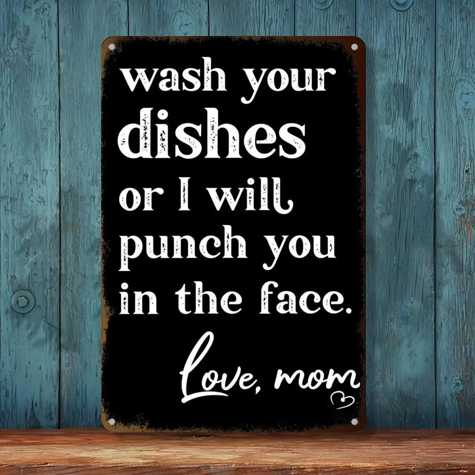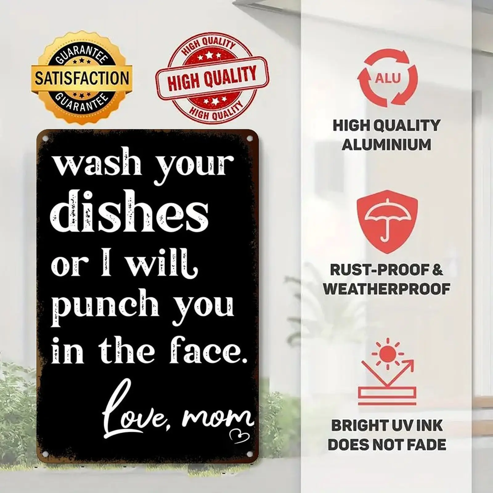 ✨ Funny Kitchen Wall Decor Plaque – A charming 8×12-inch aluminum sign, perfect for Mother’s Day or as a gift for MiMi. This metal sign features a humorous message: "Wash Your Dishes Love Mom." Ideal for kitchen walls or doors, it adds a touch of fun to any space.