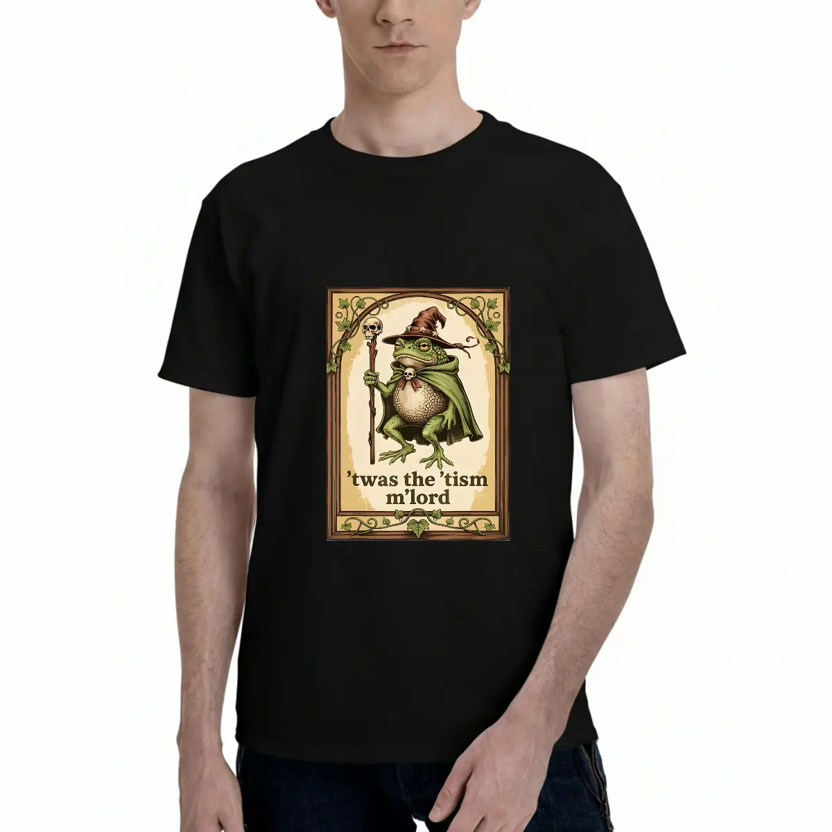 Men's Funny Wizard Frog Autism Consciousness T-shirt-'This is my disease' Medieval Frog Pattern Short Sleeve, Black Top, Suitable for Masquerade, Comic-Con and Daily Leisure Wear-Perfect Gift for Adults, skin-friendly softness, outdoor
