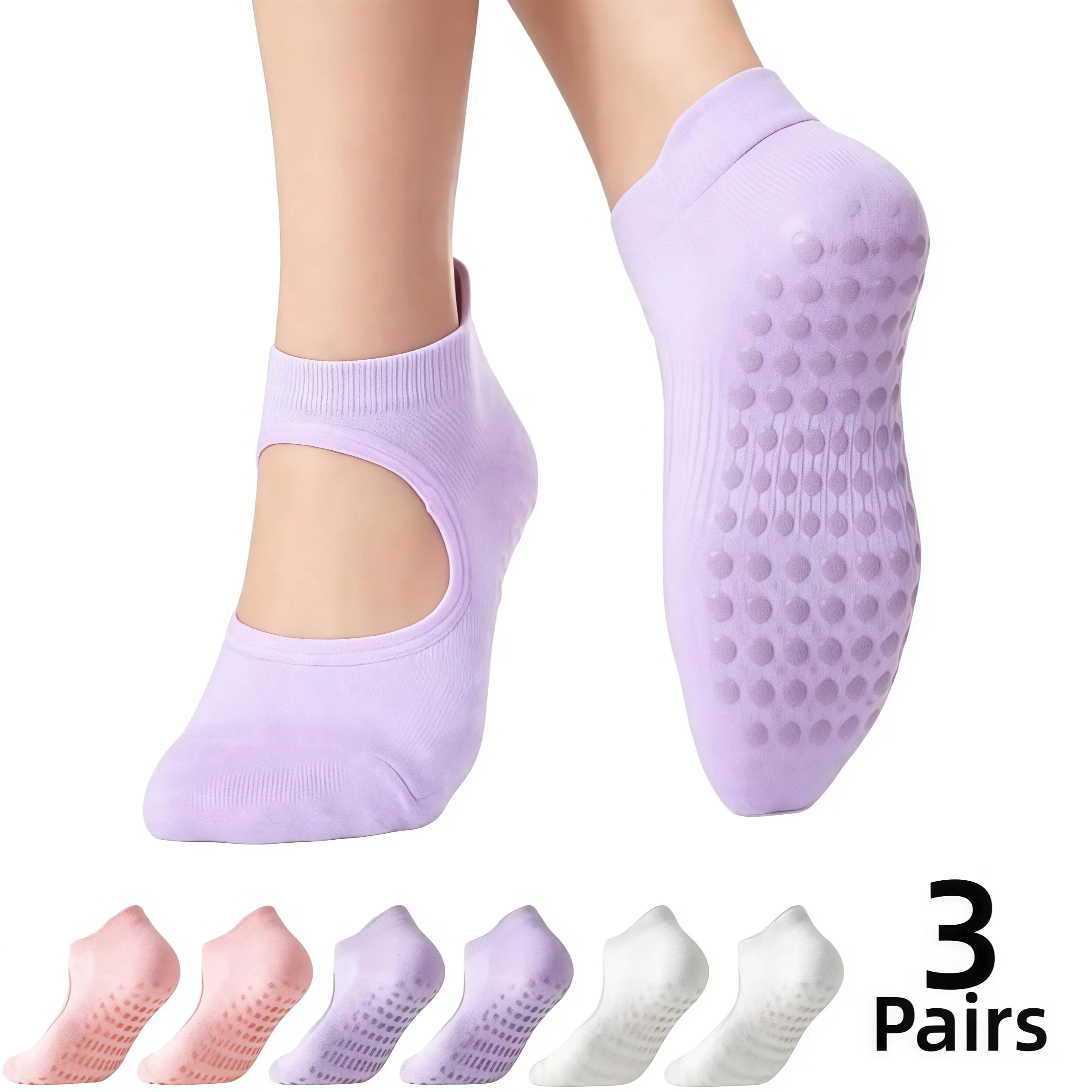 ✨ 3 Pairs Non-Slip Yoga Socks for Women ✨