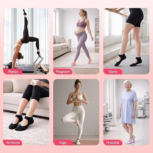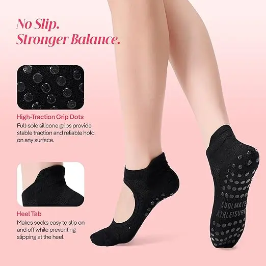 These socks feature a unique cutout design and grips, perfect for Pilates, Barre, Ballet, and home workouts. They ensure your feet stay secure and comfortable during any activity. The breathable cotton material keeps your feet cool and dry. Ideal for hospital grip needs, these socks are a must-have for your fitness routine.