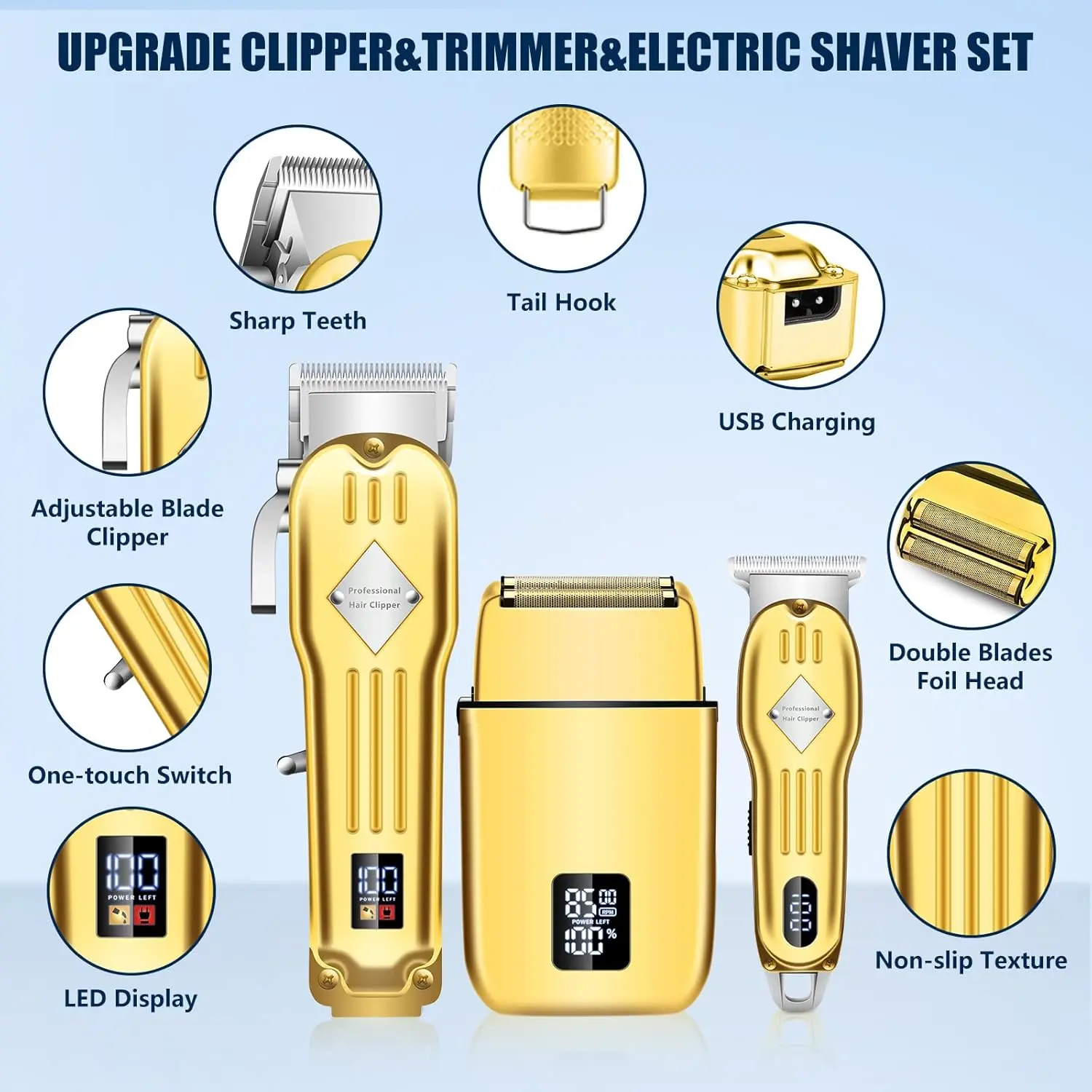 Professional Hair Clippers and Trimmer Set for Men, Beard Trimmer & Foil Shaver Kit, Cordless Mens Clippers and Grooming Kit for Hair Cutting, Beard Styling, Home, Barber