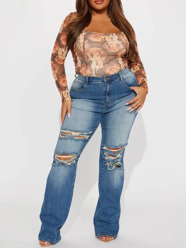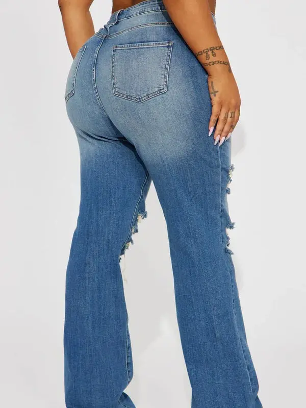 Tough Love Baggy Ripped Straight Leg Jean - Medium Wash