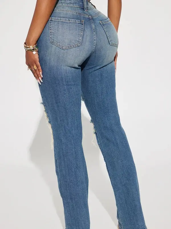 Topanga 90's Ripped Straight Leg Jeans - Medium Wash