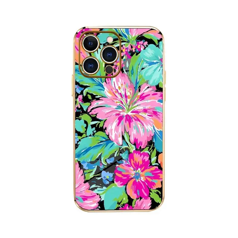 Electroplating Phone Case Floral Color Symphony Patterned Classic Square Design Non Slip TPU Soft Shell Cellphone Protective Casing for iPhone 17 Pro Max Air 16 15 14 Plus 13 12