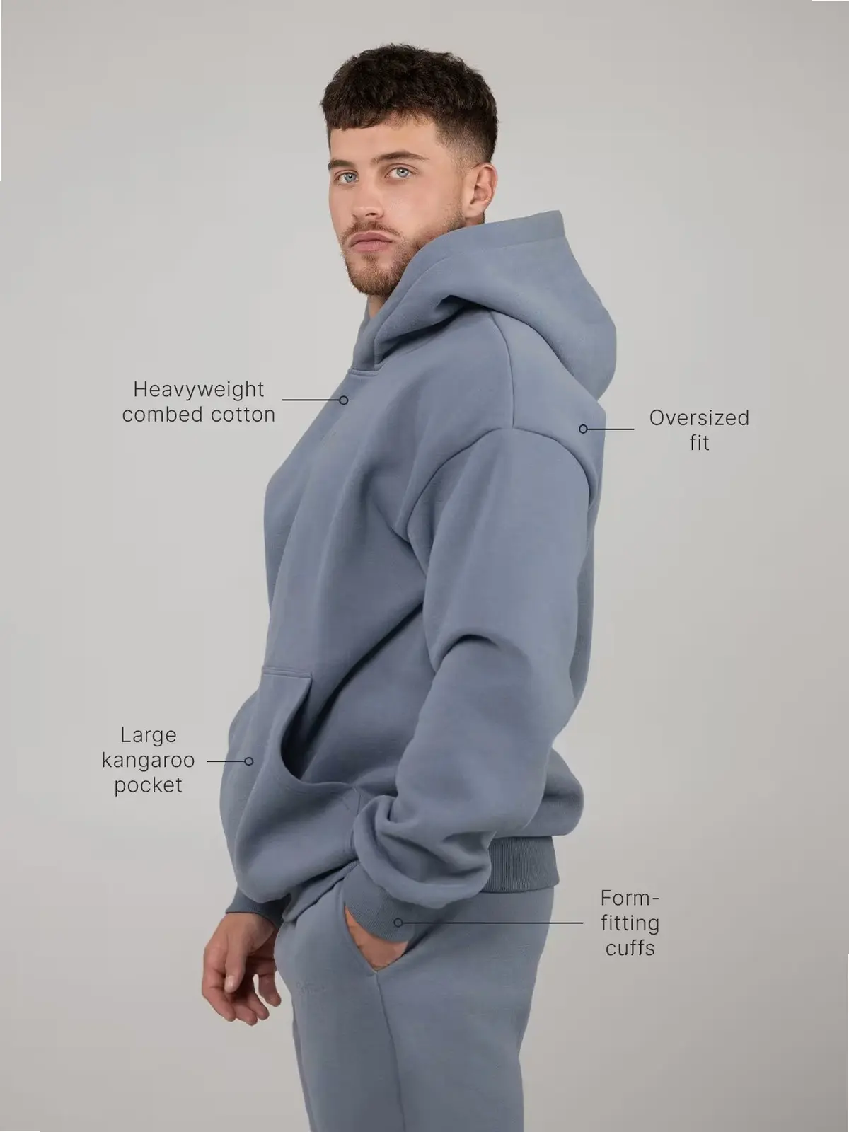 This is likely the most relaxing piece of clothing you will ever add to your wardrobe. Our proprietary Super Soft Combed Cotton Blend is paired with a spacious kangaroo pocket and an extra-large, double-layered hood for maximum coverage. The substantial, slightly weighted nature of the fabric combined with the oversized cut has earned praise from customers who note its ability to alleviate daily stress and anxiety.