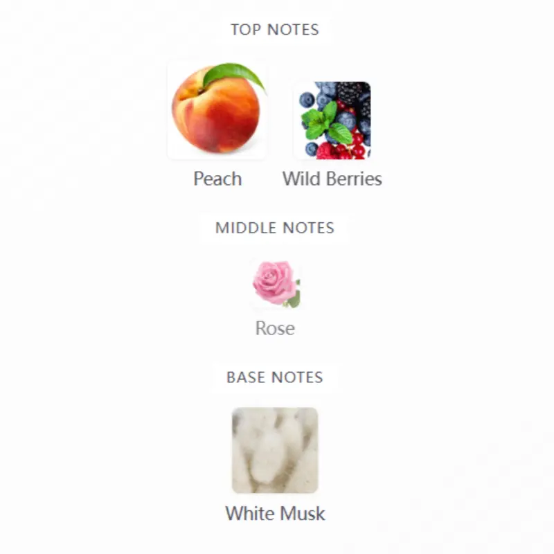 Top Notes: Juicy wild berries + fresh pear burst with sweet vanilla & white musk, creating an addictive, skin-loving aroma that’s warm, inviting, and impossible to forget.