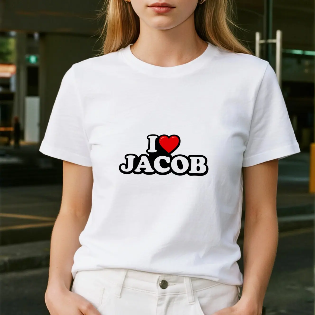 Casual Womenswear Top with Heart Design, Short Sleeve, Round Neck, Ideal for Everyday Wear
