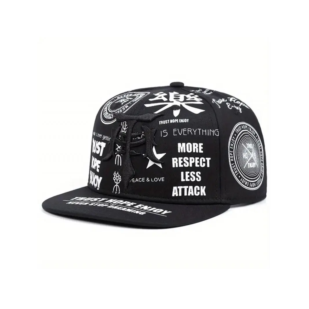 2026 Personalized Creative New Flat-Brim Hat with Graffiti Music Embroidery, Men's Trendy Street Hip-Hop Hat, Street Dance Skateboard Hat, Outdoor Casual Sports Sun Hat, , Patterned Hat, Unisex adjustable unisex team victory cap