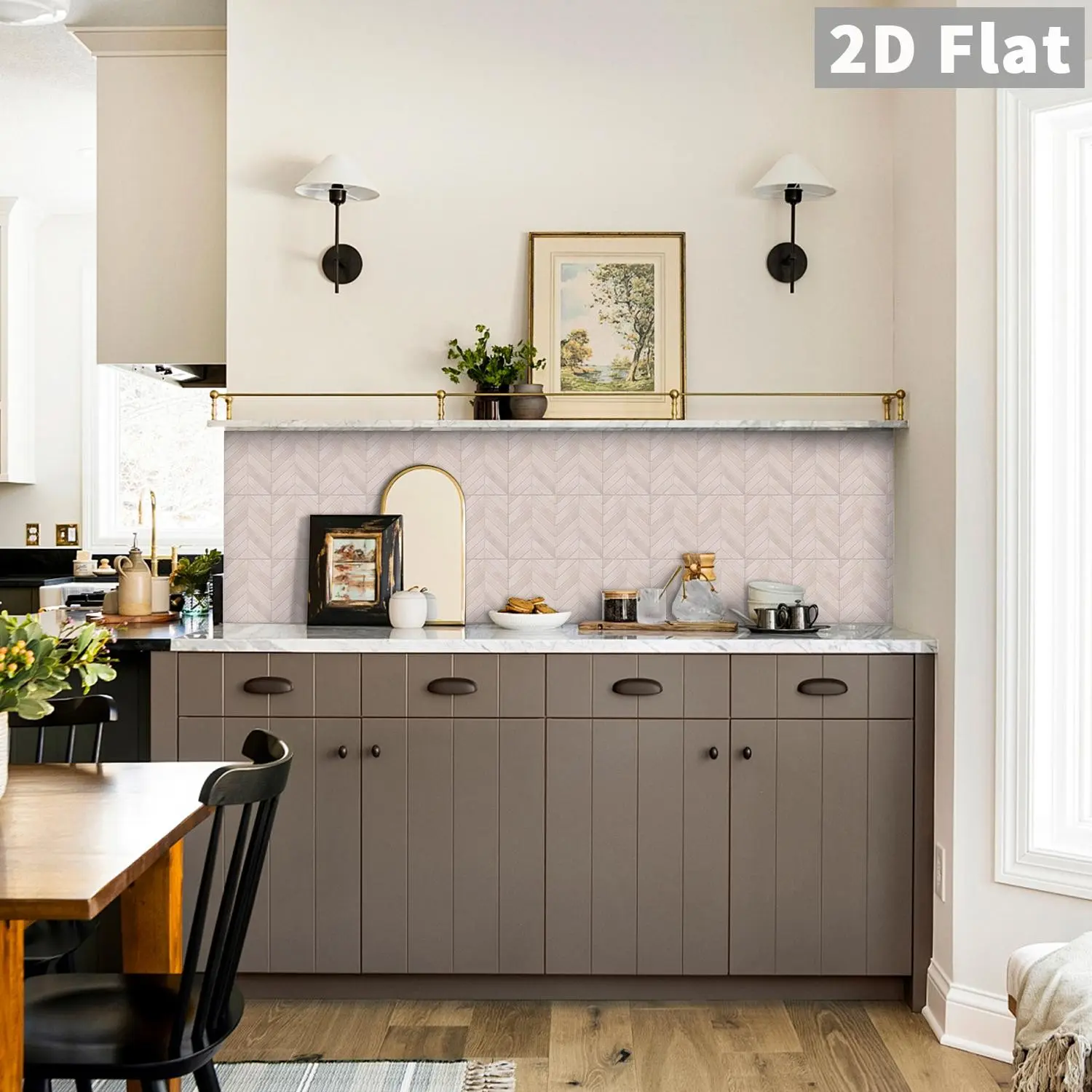 5. 10 PCS/Box GST PE Crystal Foam Tile Stickers Light Pink Herringbone Waterproof Oil-Proof Anti-Collision Home Decor for Kitchen Bathroom Ceiling Tiles Old Wooden Boards