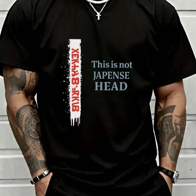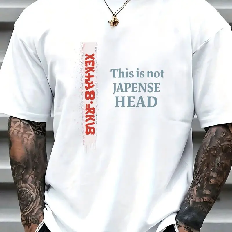 This Is Not Japanese Head Streetwear T-Shirt - Bold Graphic Print with Blue Text and Red Japanese Characters, 100% Premium Cotton Crew Neck Tee, Super Soft Breathable Fabric, Unique Edgy Style for Men, Perfect Summer Casual Top