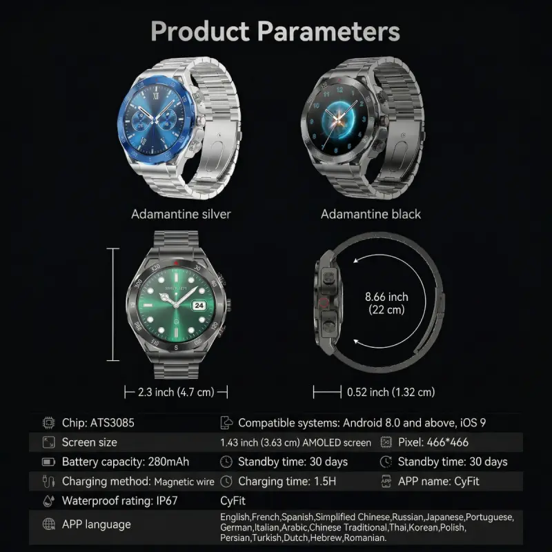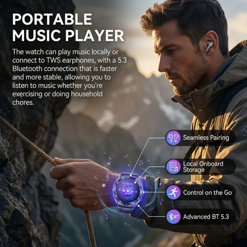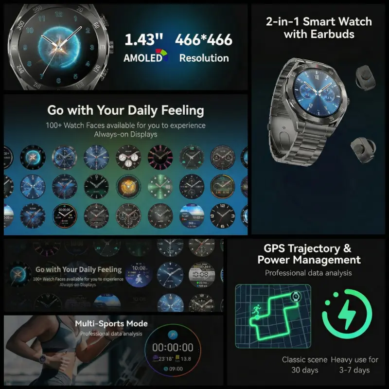 F33 Business Smart Watch with Earbuds 1.43 Inch AMOLED HD Display Bluetooth Calling Health Tracking Long Battery Life