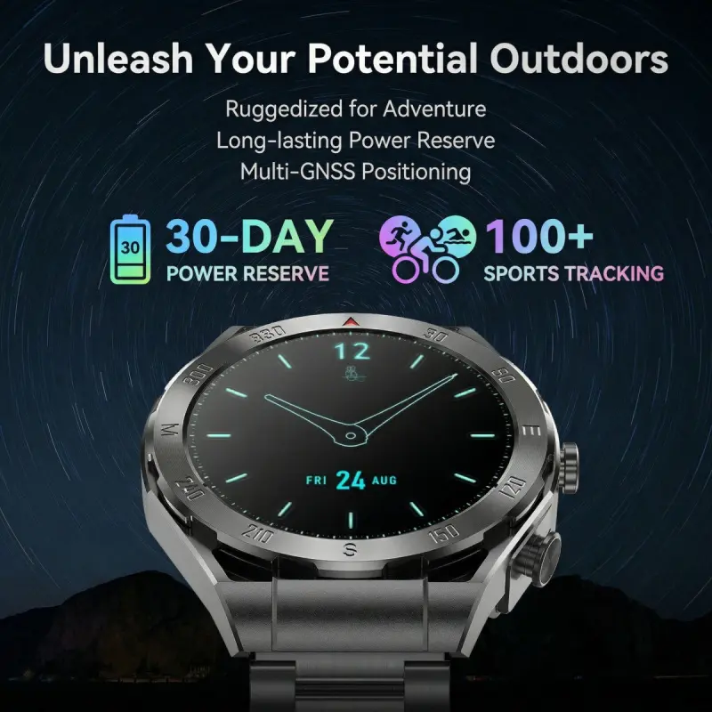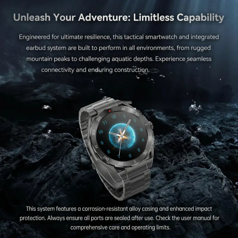 ZW48 Tactical Bluetooth Calling Smart Watch 1.46 Inch HD Round Display LED Flashlight for Outdoor Fitness Daily Wear