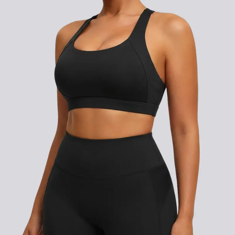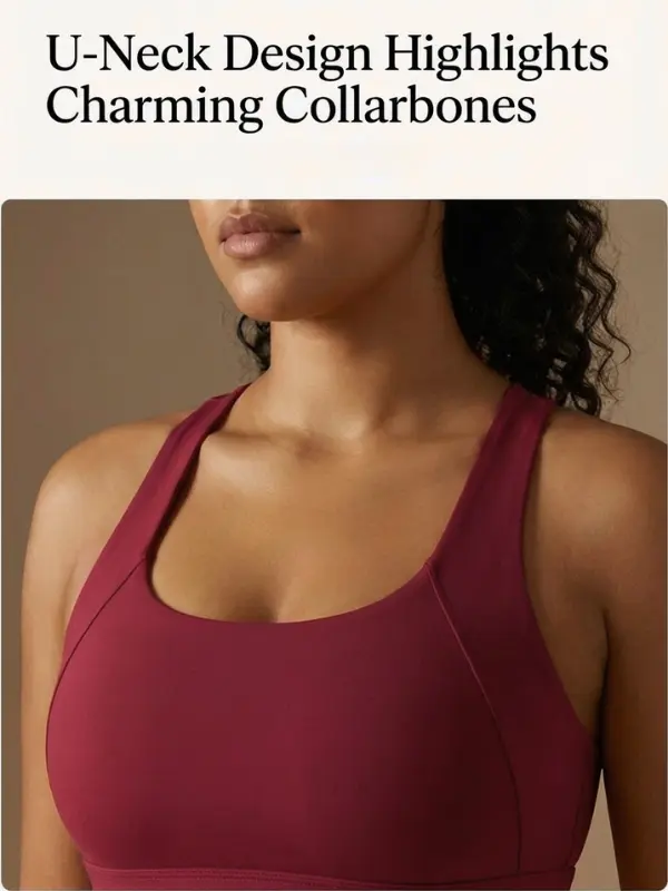 This high support sports bra is designed to keep you secure during movement while staying comfortable enough for all-day wear. The flattering U-neckline highlights the collarbone and gives a clean, athletic look, while the criss-cross back helps distribute pressure more evenly for added support and a better fit. Removable pads let you customize your coverage, and the lightweight breathable fabric helps wick away sweat so you stay cool and comfortable through workouts and beyond. Whether you’re doing yoga, Pilates, gym training, running, or just wearing it day to day, this bra is built to move with you.