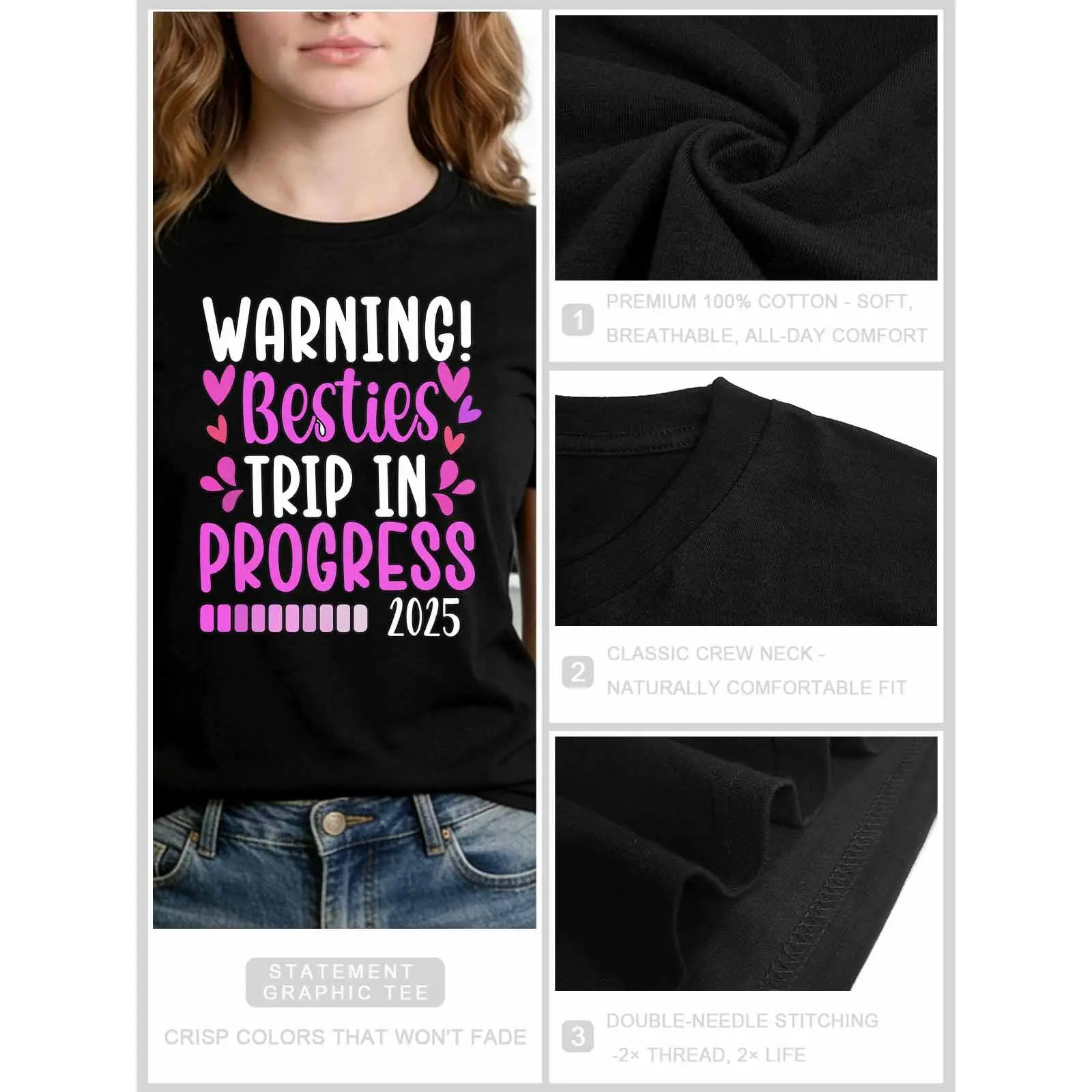 Besties Trip 2025 Girls Trip Graphic T-Shirt, 100% Cotton Friendship Vacation Tee, Fun Casual Travel Wear TShirt for Friends, Memorable Group Outing T Shirt Gift Idea