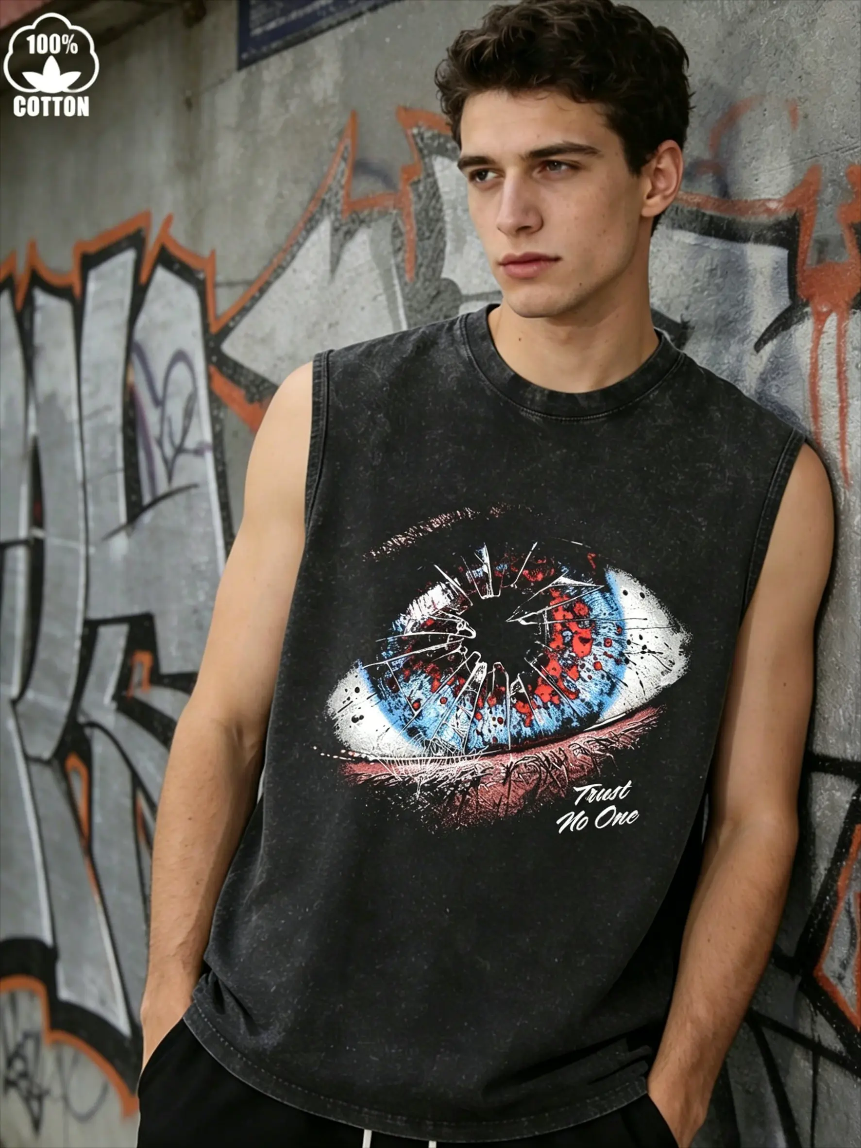 Xy2LAYR "GLOB VIBE" 2026 New Universe Tee S-3XL | Star Atmosphere Eye Pattern Graphic T-Shirt | Retro Washed Black Streetwear | Aesthetic Sunlight Design Top | Trendy High Street Summer Shirt | Unique Celestial Graphic Wear for Men & Teens