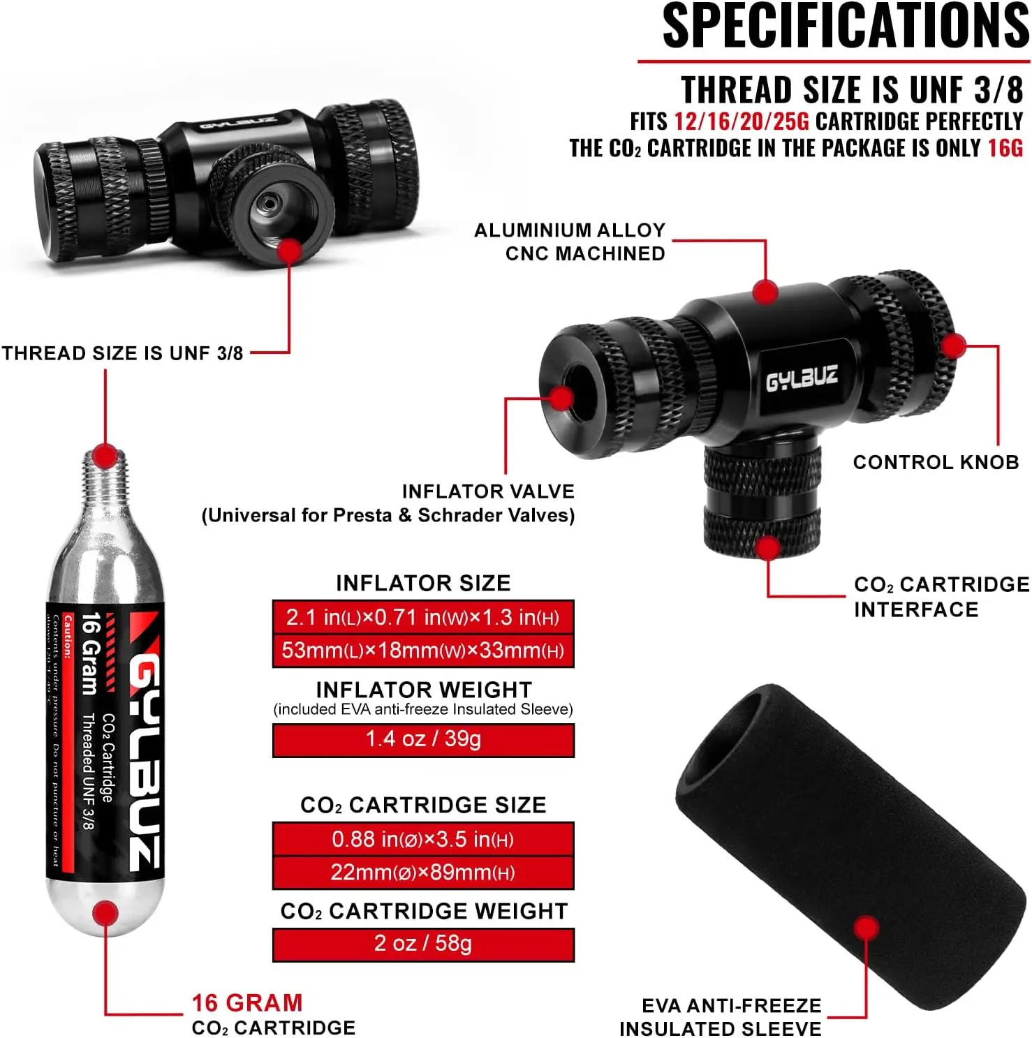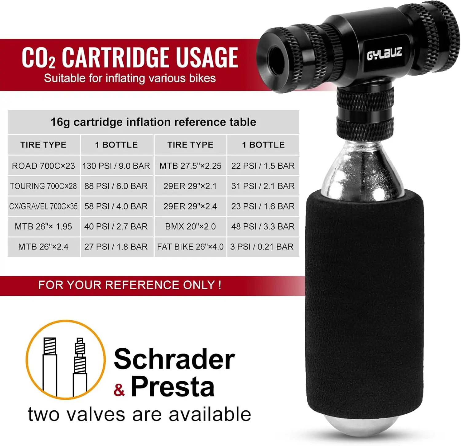 ·Gylbuz CO2 bicycle Inflator is the ultimate tool for cyclists who demand performance and reliability. Stay prepared and keep rolling with this professional-grade inflator!