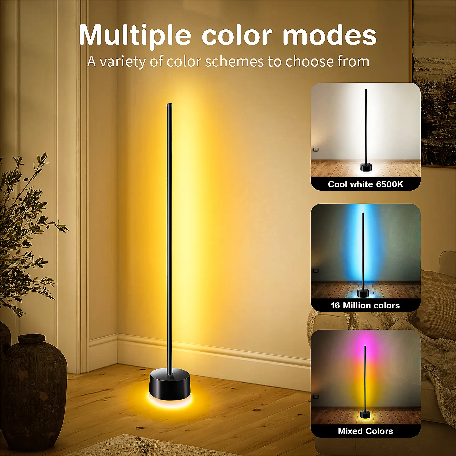 ·16 Million Colors & 250+ Scene Modes: This smart floor lamp has 16 million vivid colors and 250+ dynamic scene modes, allowing you to customize lighting effects for any moment.