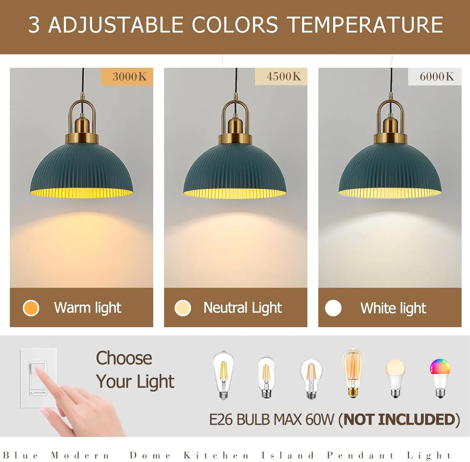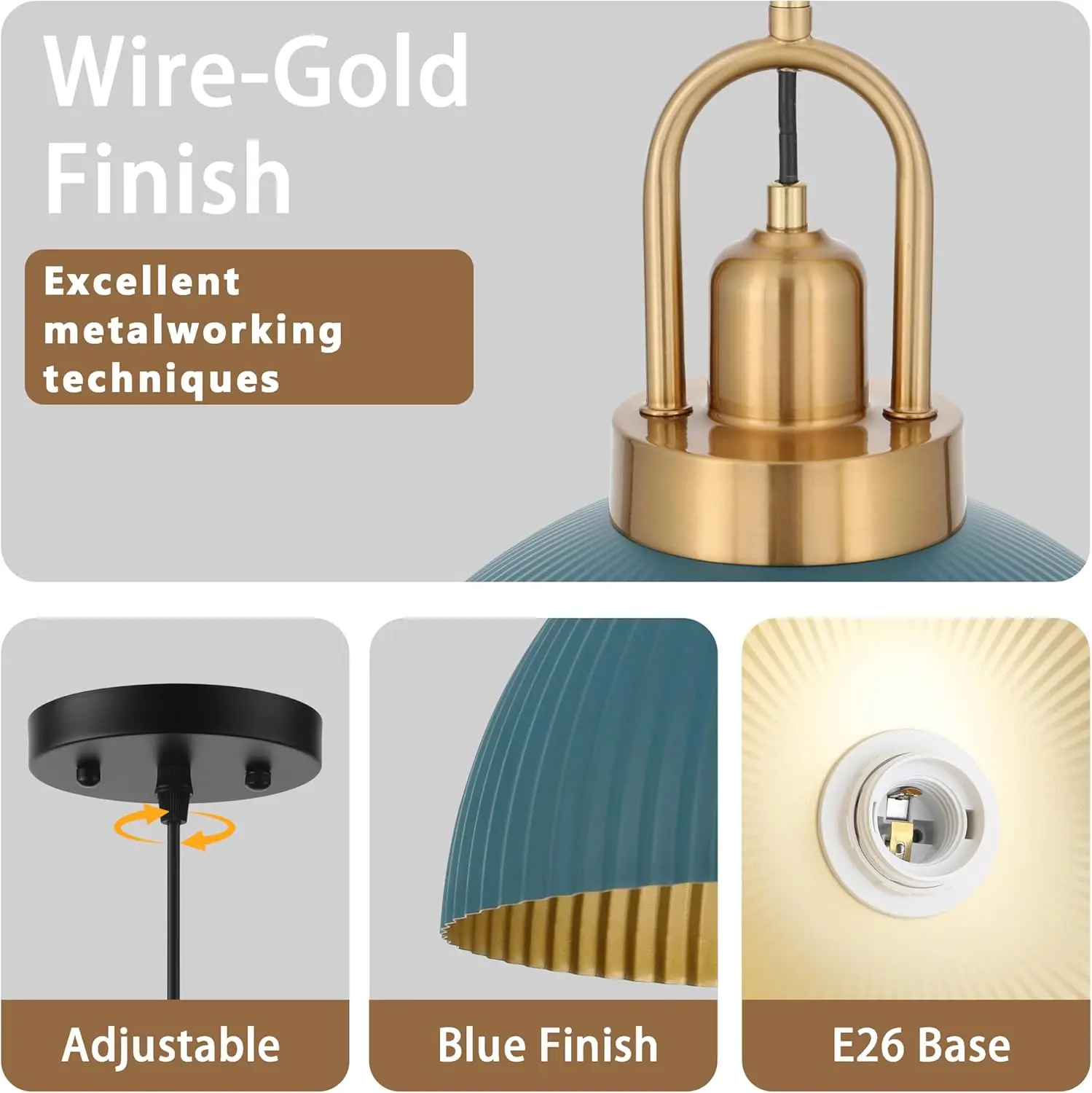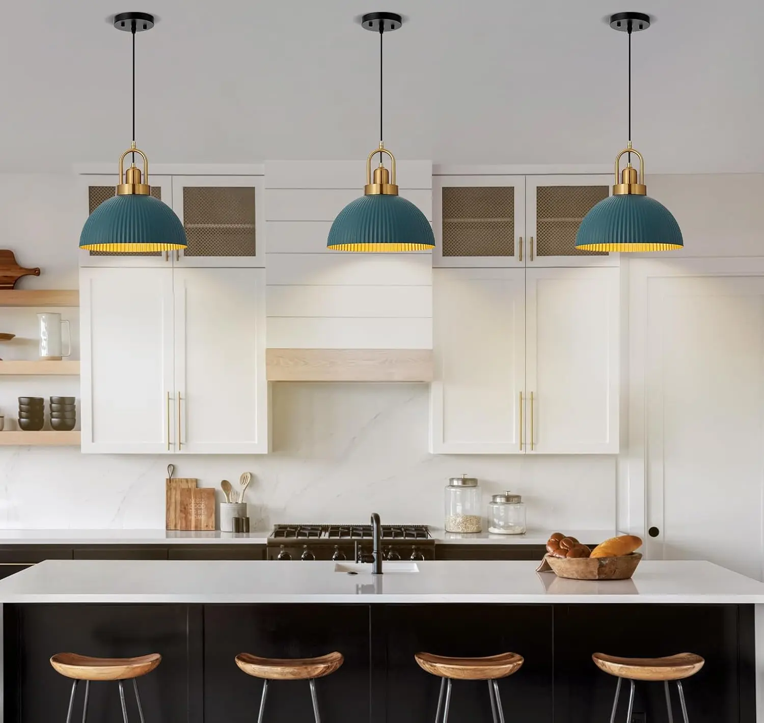 Pendant Lights Kitchen Island, Black Metal Farmhouse Pendant Light Fixtures, 11.8" Industrial Modern Hanging Pendant Lights for Kitchen Island Dining Room Bedroom Cafe Bar (Blue, 1 Pack)