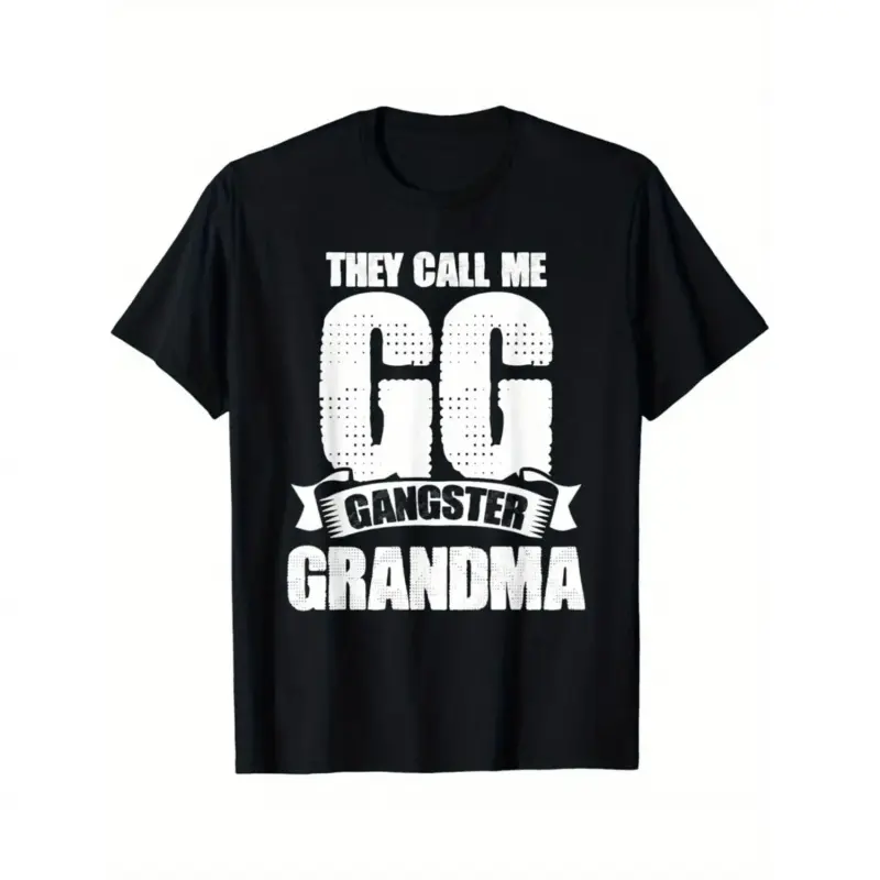 Title: 1pc Black Cotton "They Call Me GG Gangster Grandma" Graphic T-Shirt