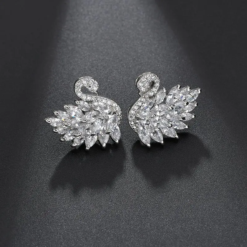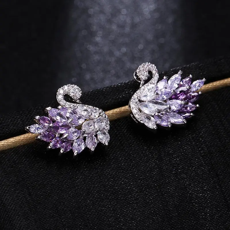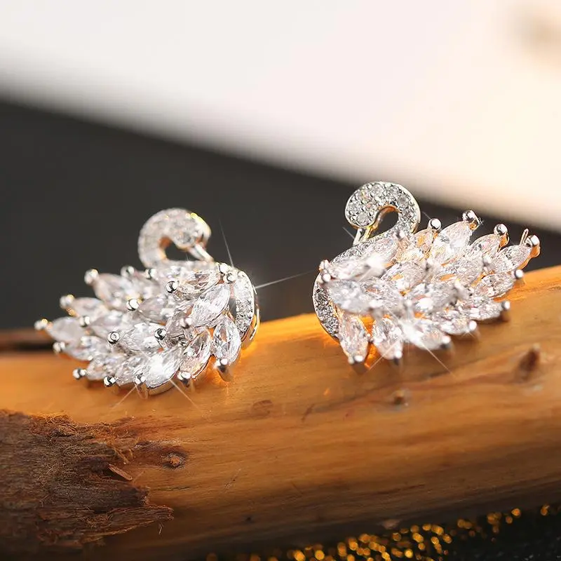 New Exquisite Super Sparkling Light Luxury Full Zirconia Swan Earrings Classic Versatile Fashion Style Earrings