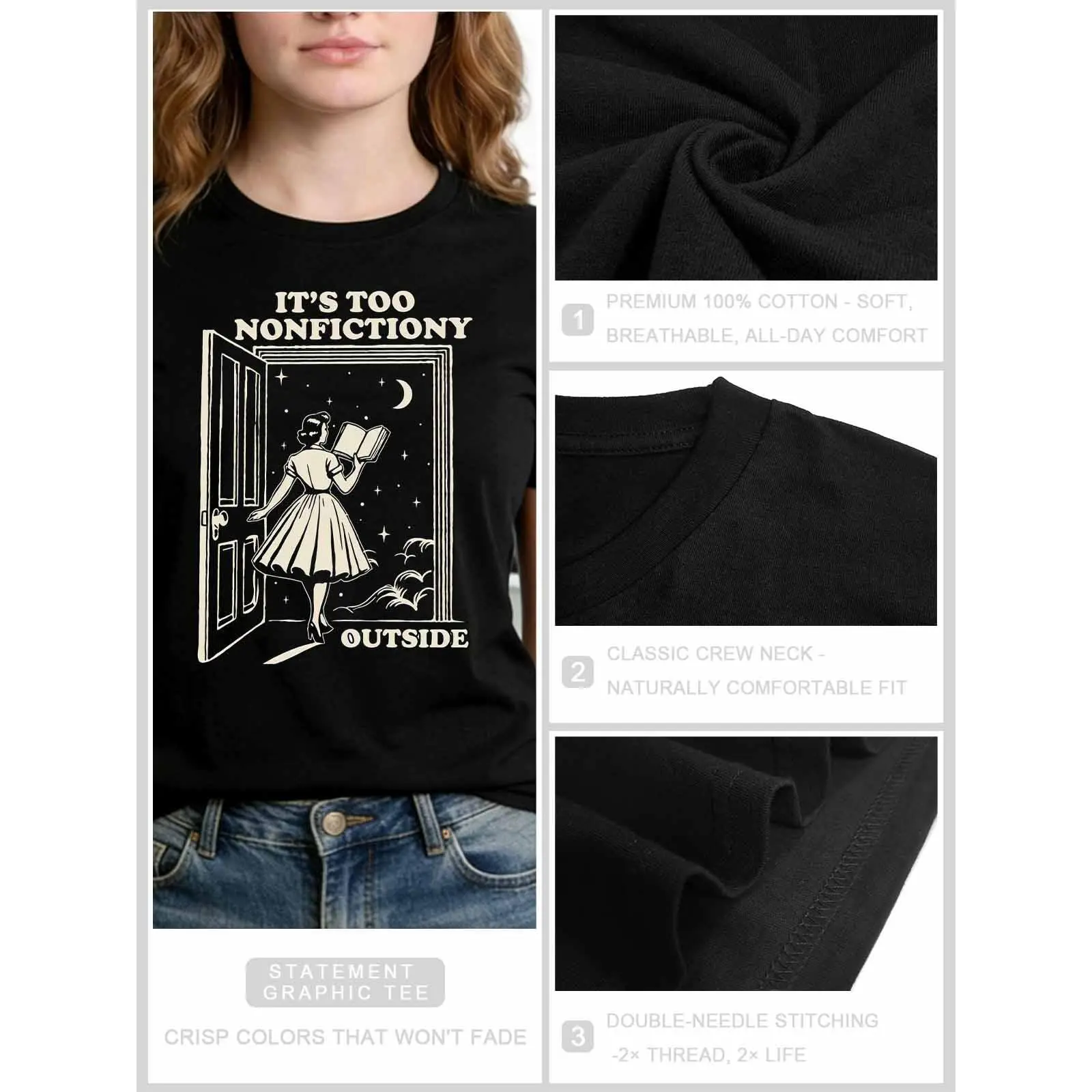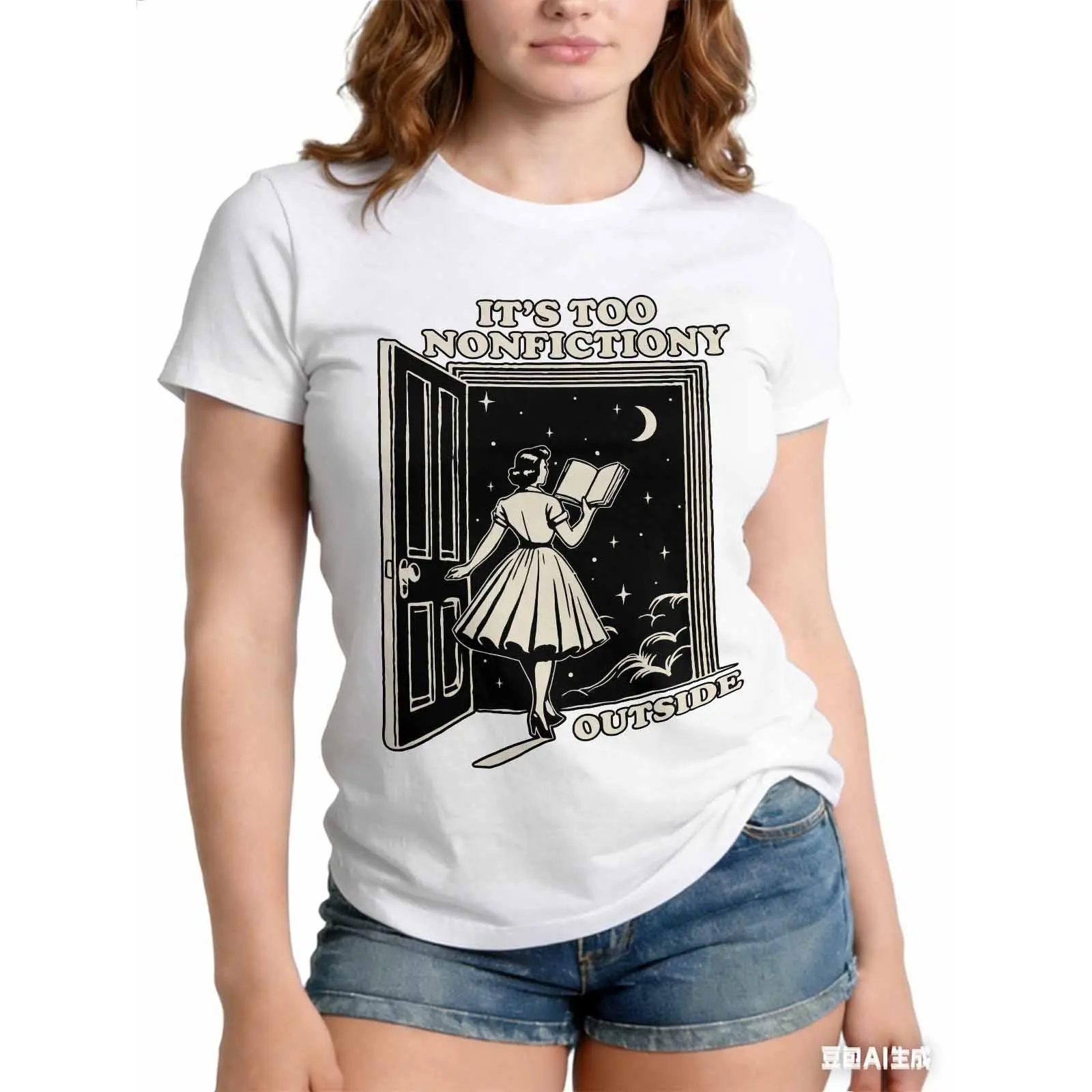 Book Lover Graphic T-Shirt for Women | Vintage Aesthetic 100% Cotton Tee | Funny 'Nonfictiony Outside' TShirt | Cozy Everyday Reader T Shirt, Perfect Gift for Her