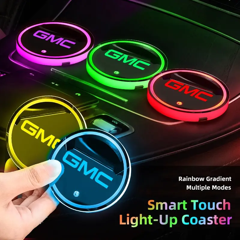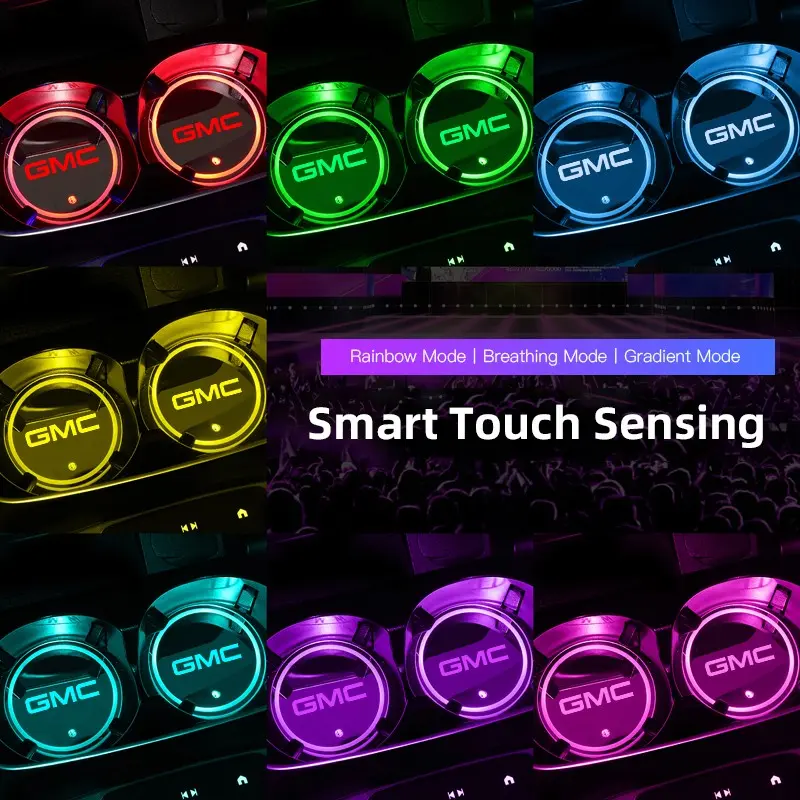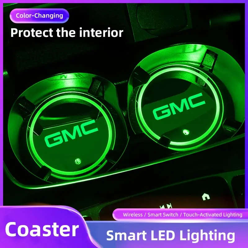 2pcs Car Luminous Water Cup Pad LED Atmosphere Light For GMC Terrain Sierra Canyon Yukon Acadia Savana Denali AT4 Granite