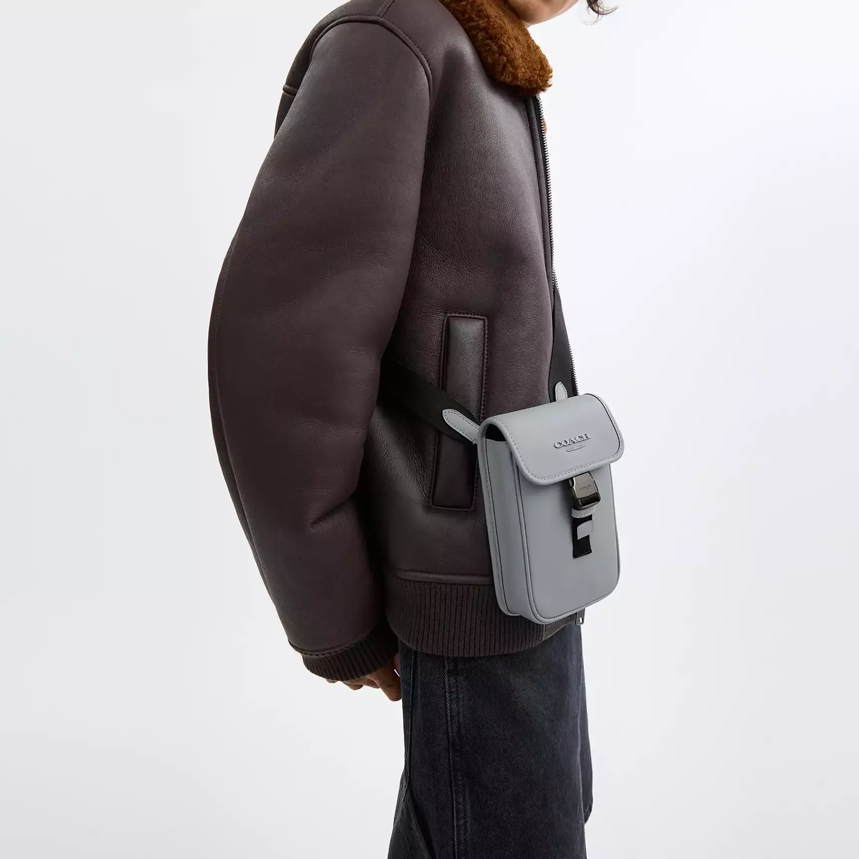 COACH Racer Phone 11 Crossbody Bag – Men's Mini Sling Bag (Gray-Blue)