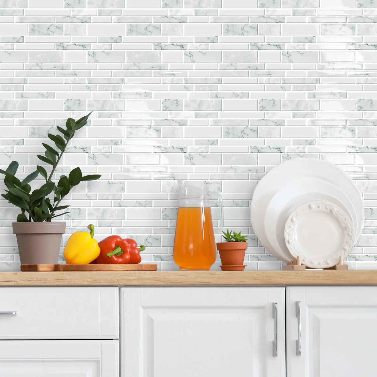 Combining a classic grid pattern with modern marble textures, this design creates a stylish and elegant visual aesthetic—an excellent choice for upgrading kitchens, bathrooms, laundry rooms, and other living spaces.