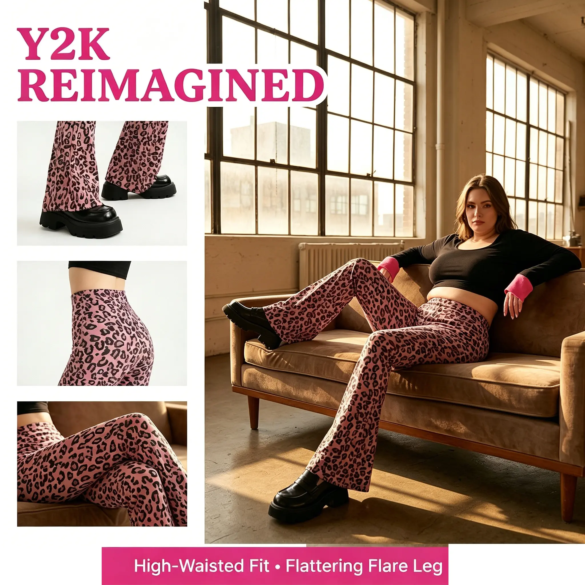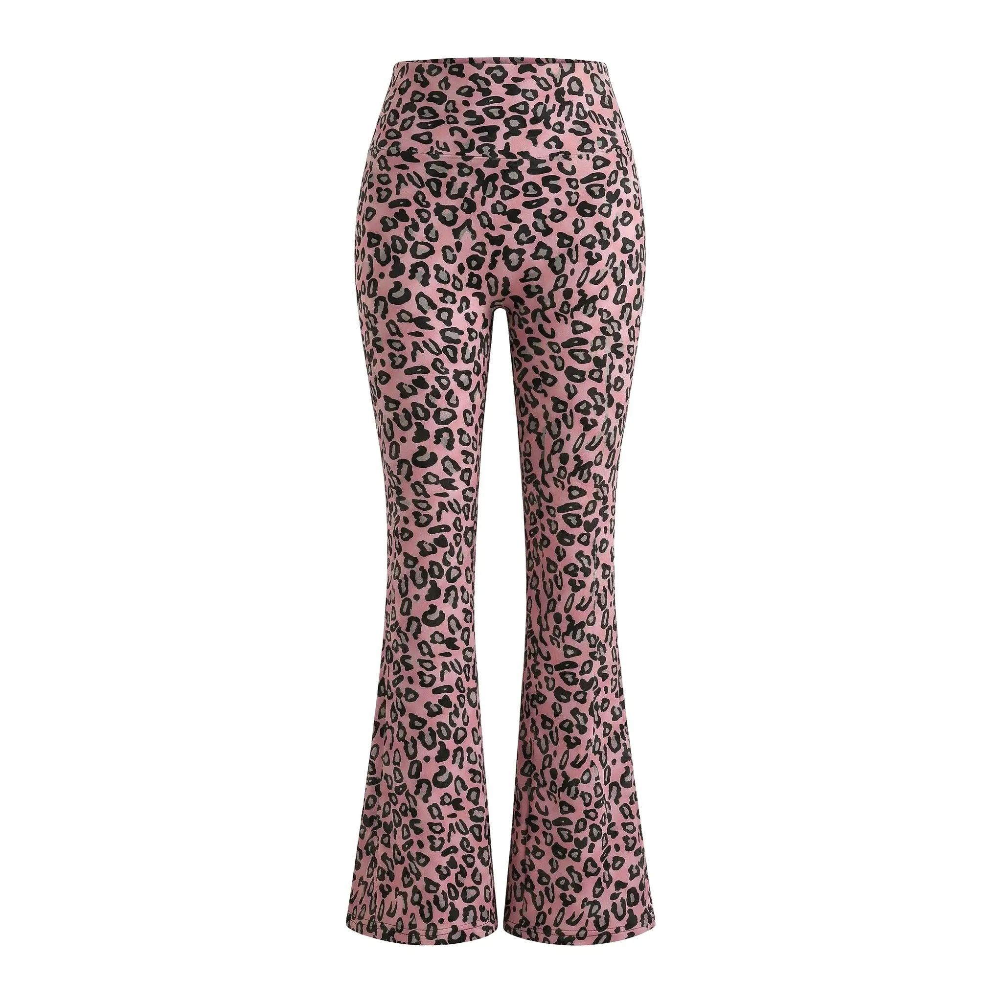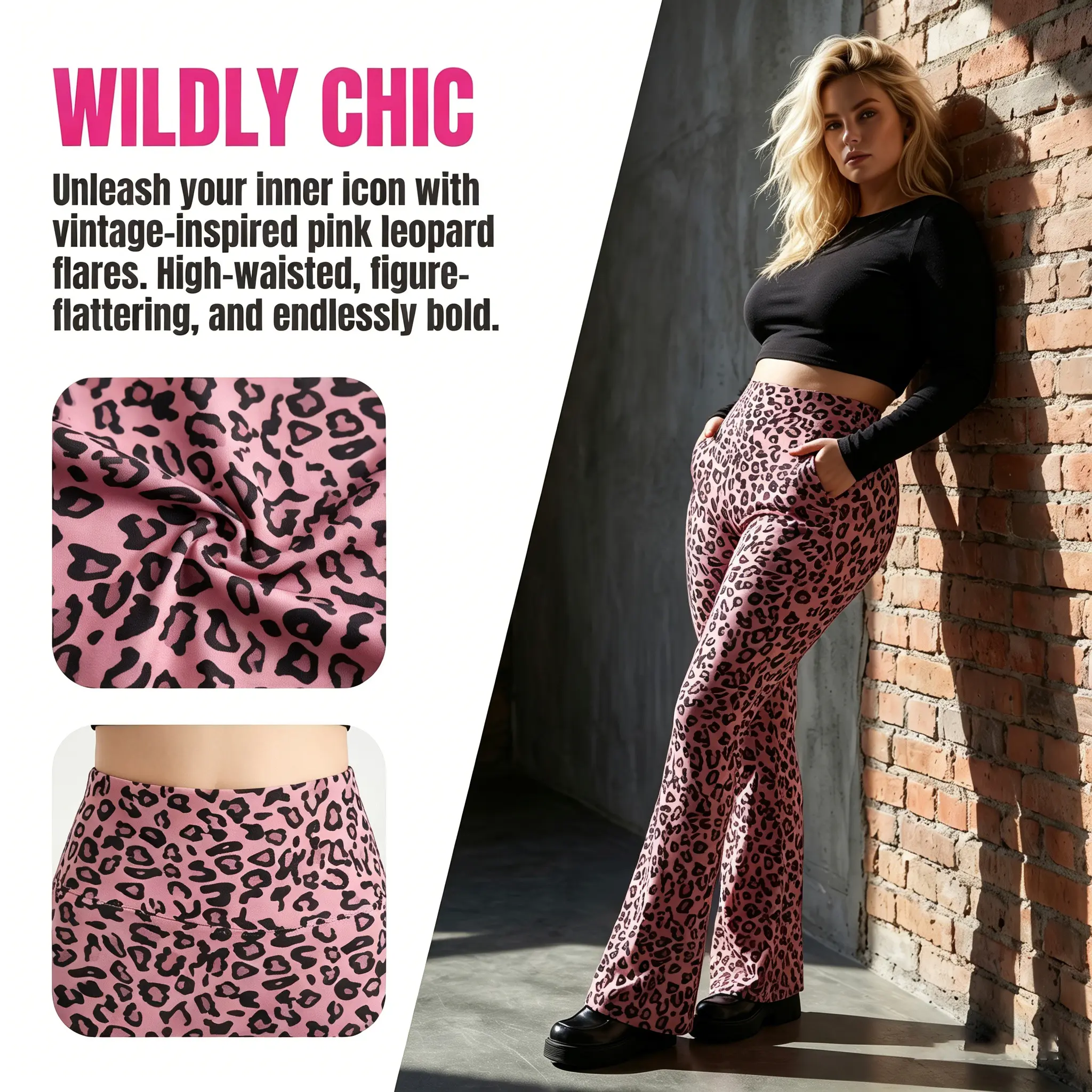 Using classic Leopard Print leopard print elements and sweet pink collision to create a highly recognizable High Fashion style; Flare Leg micro flared pants shape the leg lines, visually elongating the legs; High Waisted waist cut perfectly wraps around the abdomen, showcasing a curvaceous figure