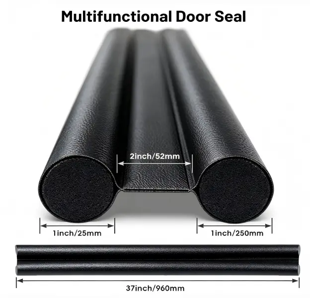 Crafted with durable faux leather and dual EPE foam cylinders, it delivers an airtight seal. This design cuts heating/cooling energy costs. The adjustable hook-and-loop closure allows trimming to fit gaps 1/4" to 1-1/2" on standard doors. It works seamlessly on all flooring types.