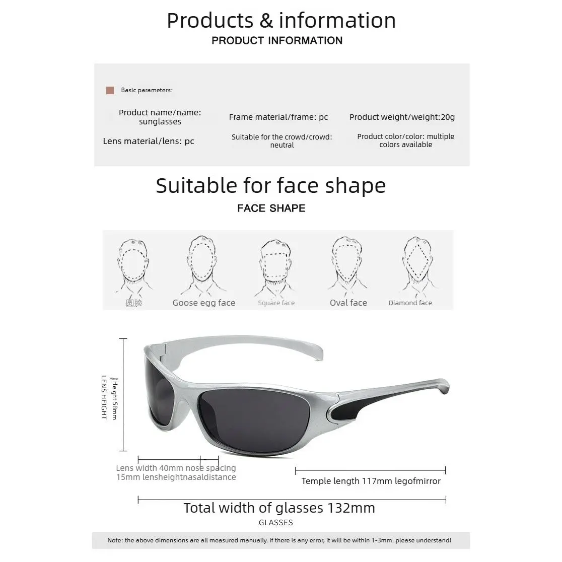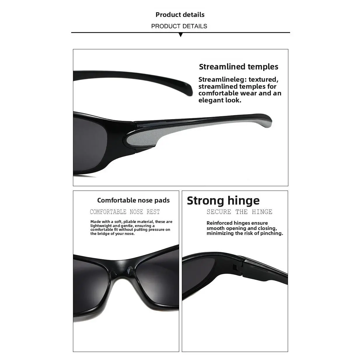 These stylish sporty sunglasses are designed for daily wear and outdoor activities, featuring UV protection, a lightweight frame, and a universal fit for all face shapes. Combining fashion and function, they offer clear vision and all-day comfort for driving, cycling, and everyday use.