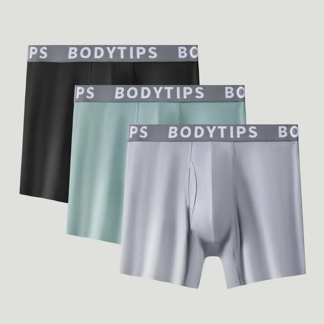 BodyTips 3 Pack Soft Support Bamboo Fiber Boxer Briefs Flat Cut Design Skin Friendly Thickened Crotch Seamless Fit Underwear Smooth Boxer Panties Popular Underwear Versatile Briefs For Daily Wear Lounge Casual Outfit Workout Training Active Use All Day