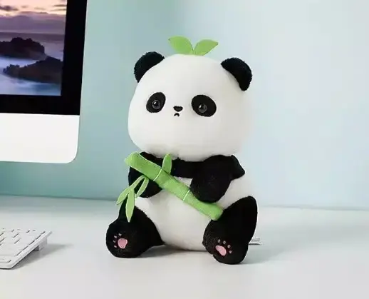 This panda plush doll boasts outstanding product highlights that set it apart. It features a soft and bouncy texture, as comforting and stress-relieving as chewy mochi, providing a delightful touch experience. Filled with 100% polyester fiber, it is plump and well-stuffed, with excellent resilience that allows it to quickly regain its shape after being squeezed. Crafted with high-quality plush fabric, it offers delicate, gentle, and skin-friendly softness, ensuring comfort even for long-term cuddling. The adorably dazed design, paired with the leaf accessory and bamboo piece, enhances its cuteness and healing vibe, making it an ideal companion for daily relaxation.