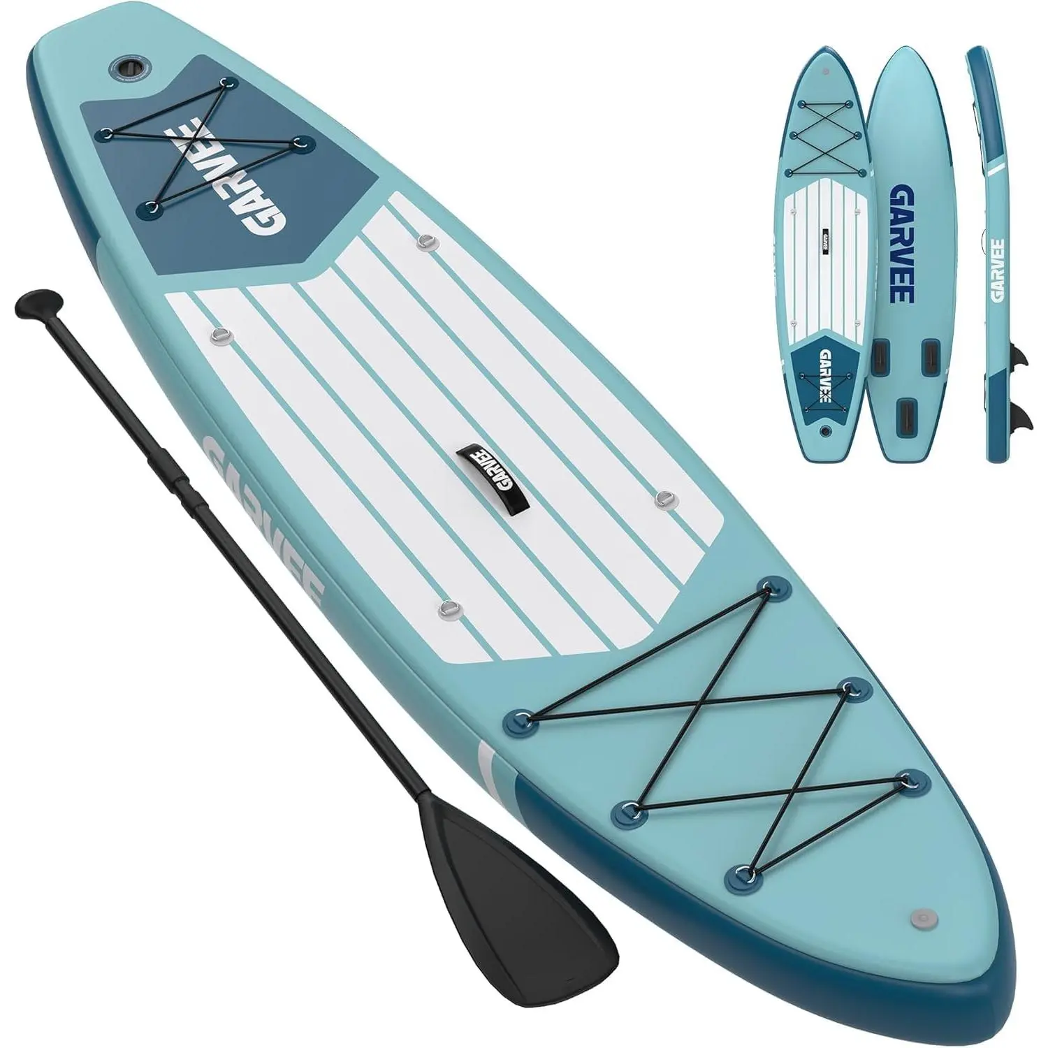 ·【 Signature Design & 10'6" Stable Performance】 Featuring ’s signature mint-green tropical print with geometric palm leaf patterns, this 10'6" wide-body SUP delivers exceptional balance and maneuverability. With a 450lb weight capacity, it comfortably fits 1-2 adults, gear, or your pet, making it ideal for family trips and first-time paddlers