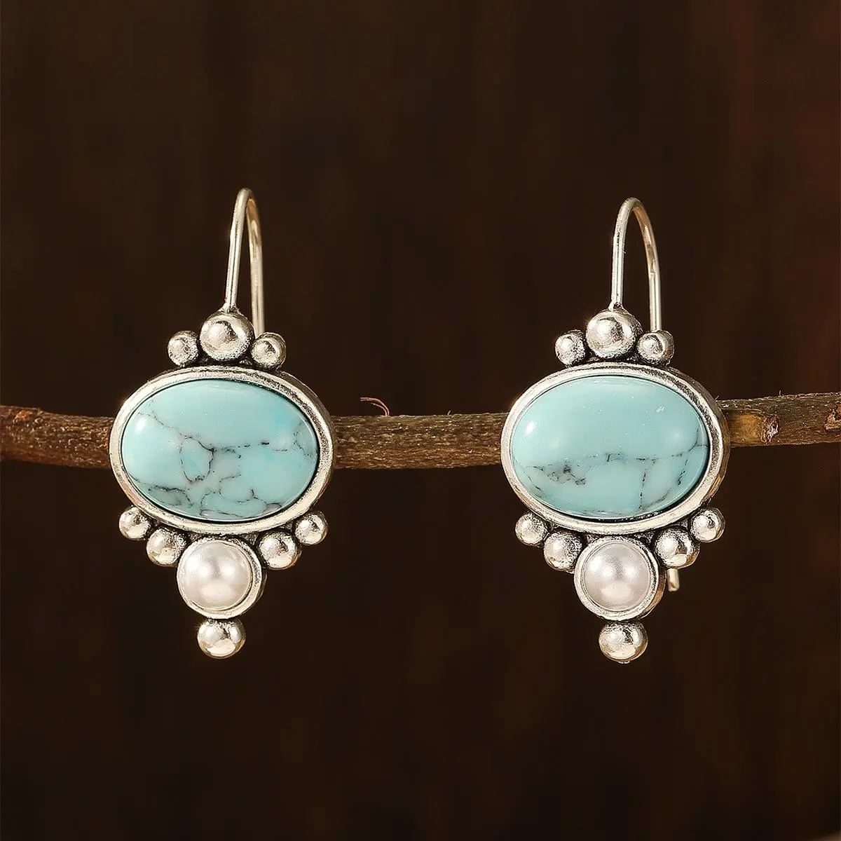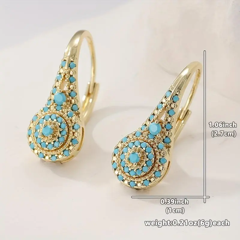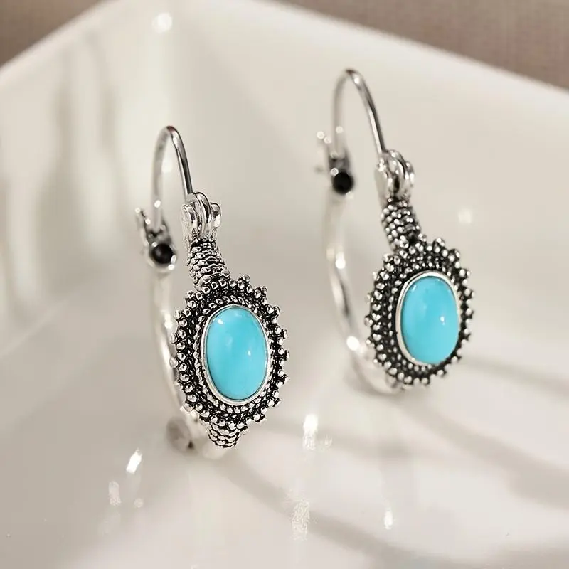 A Pair of Fashionable Inlaid Green Color Stone Earrings, Women's Bohemian Style Retro Trendy Accessory Gift
