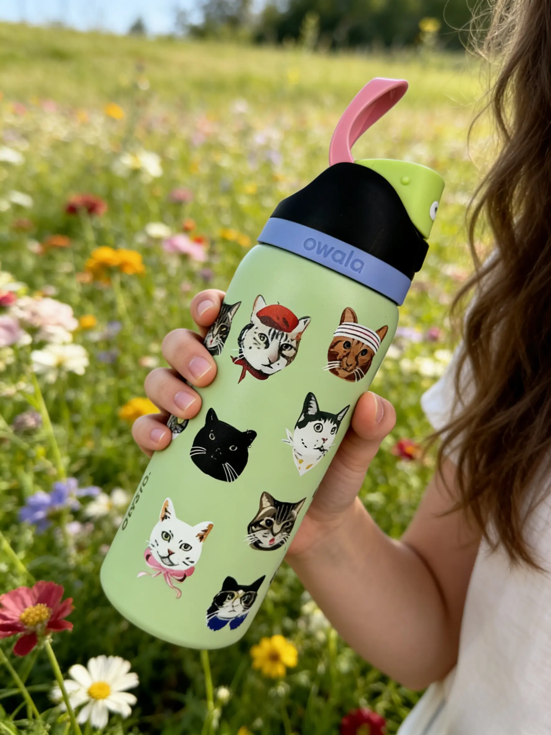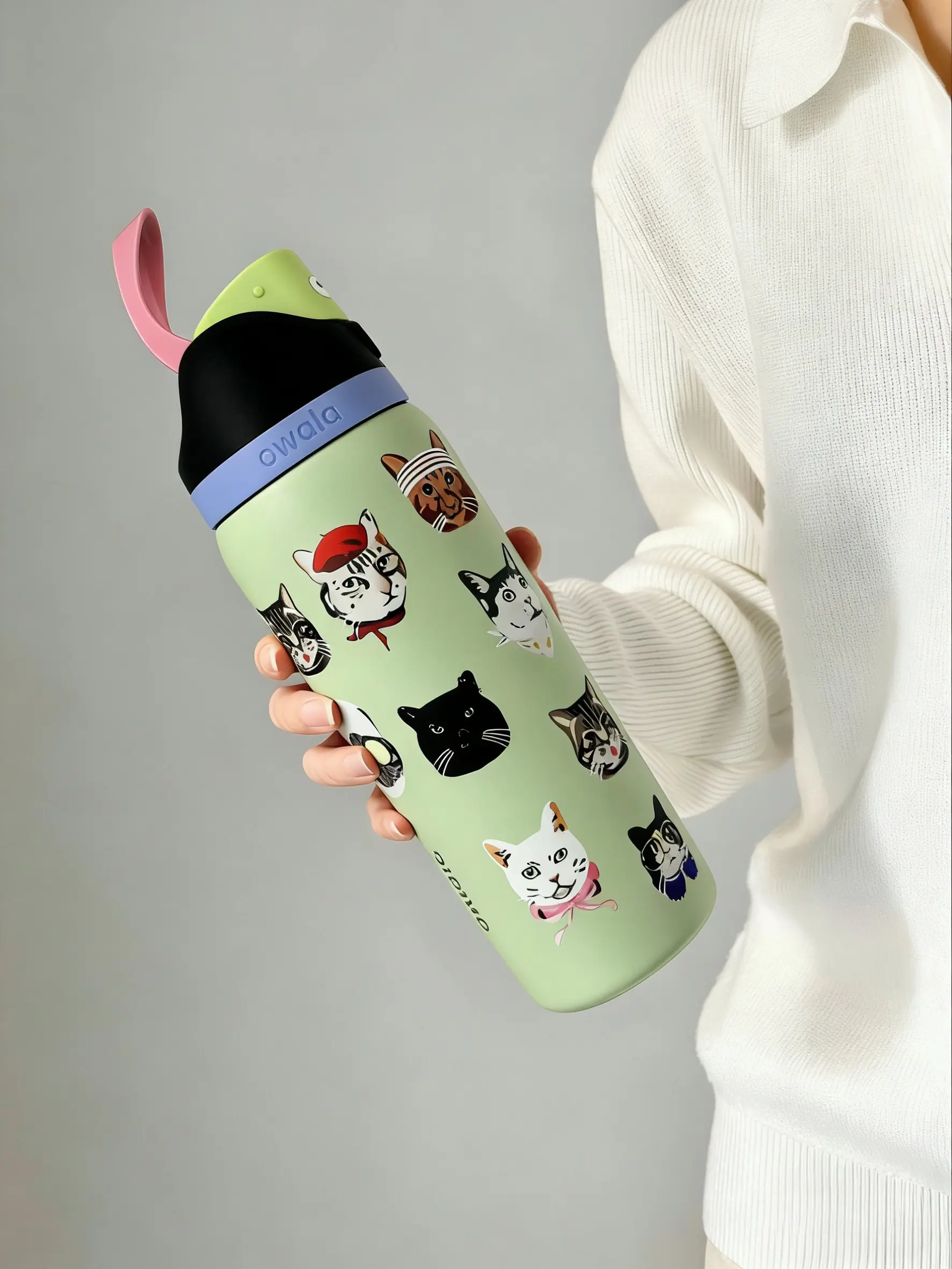 ·Fun Design: This Owala 32oz bottle features a cute cat print, perfect for cat lovers. The vibrant cat faces add a playful touch to your drinkware. 🐱✨