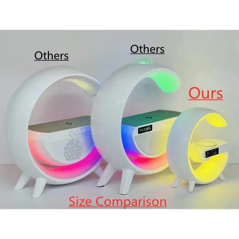 Function description: 15W Fast wireless charging, atmosphere lamp, bedside lamp, dazzling light effect, Bluetooth audio, speaker play and Aux , TF ,Time, Alarm Clock mode.