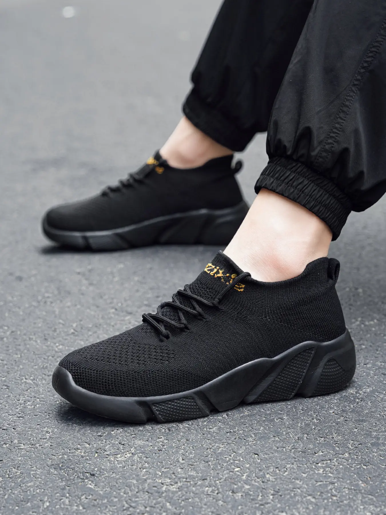 Unisex Black-Gold Flyknit Sock Shoes: Soft Sole Shock-Absorbing + Elastic Mouth, Daily Commuter Lazy Sneakers