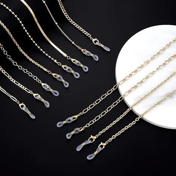【Simple Gold Link Chain】Delicate glasses lanyard chain,simple and fashion.The entire appearance is very beautiful, they can also be used as accessories for your outfits,which will add a lot of charm for you!Not only can they be an eyeglass holder chain, but also an exquisite decorative necklace chain,you can remove silica gel ends to use it as a stylish mask necklace holder.