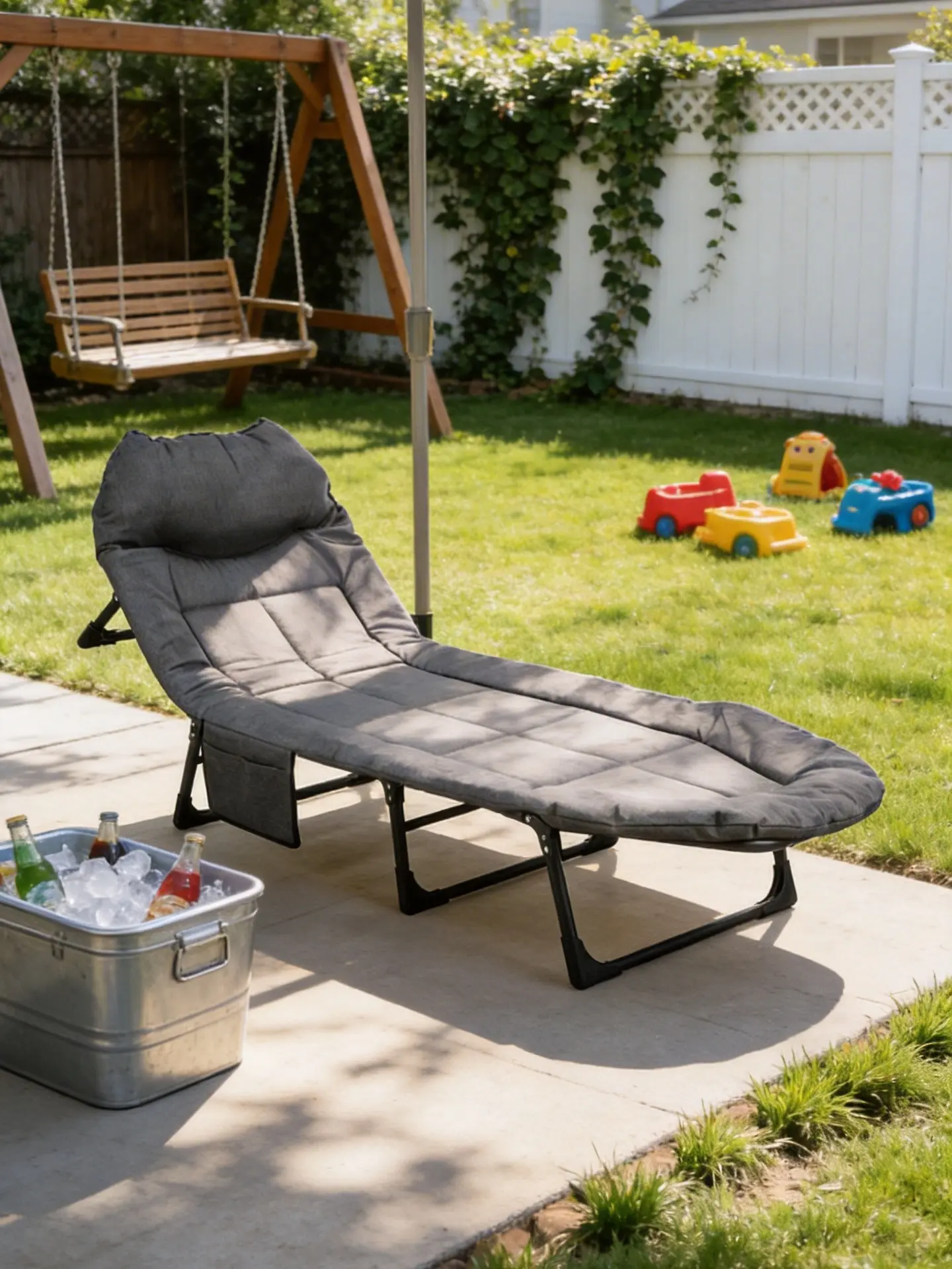 ·【Built-In Comfort Headrest】 Enjoy added relaxation with the integrated headrest on this foldable bed. It provides essential support for your head and neck, enhancing comfort whether you're indoors or outdoors.