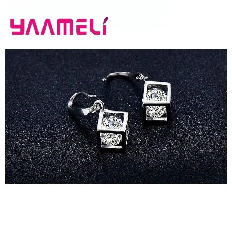 925 Sterling Silver Color Bridal Jewelry Sets Square Cubic Zirconia Necklaces Hoop Earrings Women Girls Engagement Anniversary